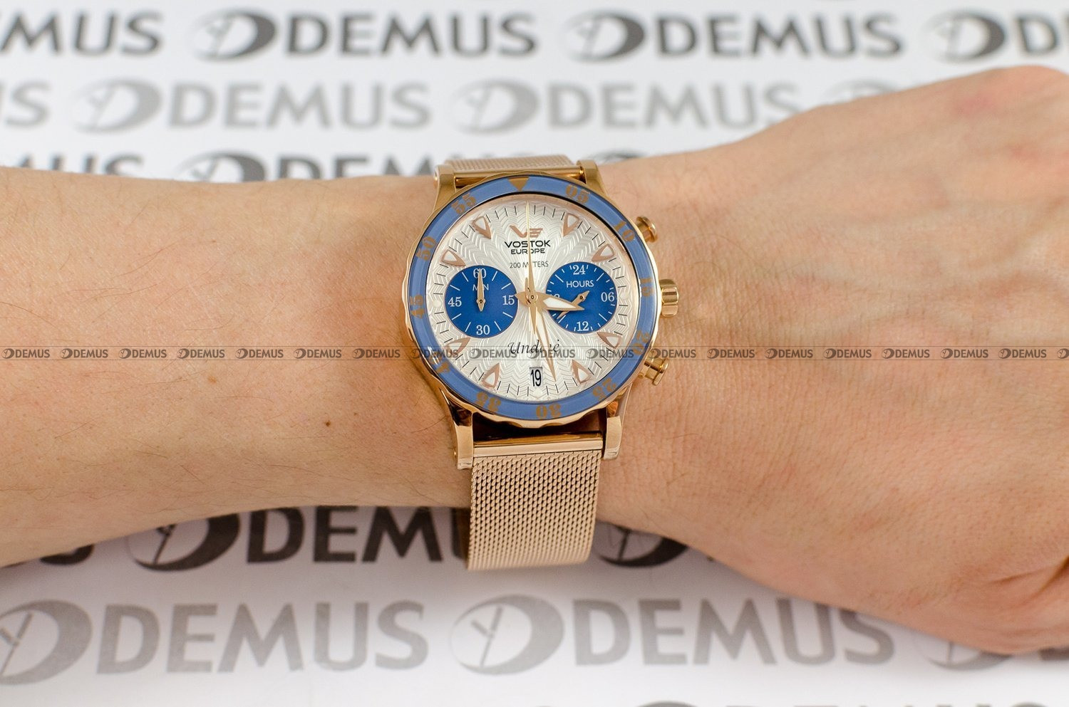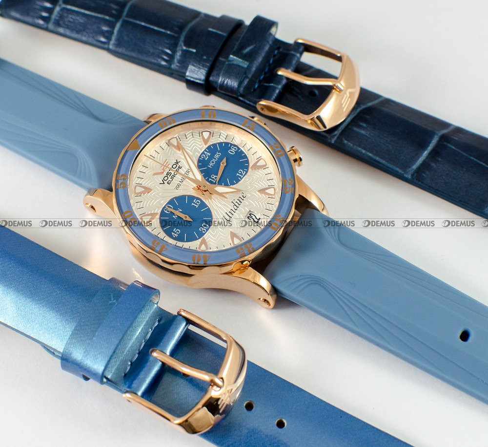 Markowy zegarek damski Vostok VK64-515B527B to produkt zaprojektowany przede wszystkim dla Pań ceniących sobie nie tylko styl i elegancję, ale także funkcjonalność. Wygodę w codziennym użytkowaniu zapewnia wymienna:, Siateczkowa - Mesh, pozłacana bransoleta. Jednym z ważnych elementów decydujących o wyglądzie tego modelu jest wymienny, silikonowy pasek, Dwa paski skórzane. Urządzenie jest napędzane przez niezawodny mechanizm kwarcowy. Stalowa - pozłacana koperta idealnie pasuje do tego modelu. Producent deklaruje dla tego modelu klasę wodoszczelności WR200.Srebrna, wskazówkowa tarcza wykonana z masy perłowej to idealne połączenie stylu i funkcjonalności. Zastosowany w tym modelu chronograf może mierzyć czas do godziny z dokładnością do 0,2 sekundy. Z myślą o wygodzie użytkownika wskazówki zegarka zostały pokryte warstwą fosforyzującą Super Luminova. Do ochrony tarczy zegarka wykorzystano szkiełko mineralne utwardzane, które zapewnia wysoką odporność na zarysowanie i stłuczenie.
