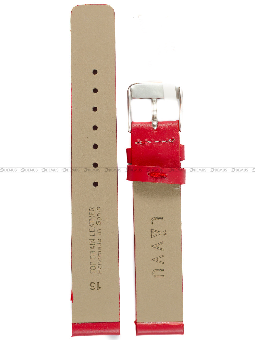 Markowy pasek do zegarka LAVVU LSCUR14 wykonany z naturalnej skóry. Prezentowany pasek ma kolor czerwony. Długość paska (liczona od klamerki do ostatniego otworu) to 16,5 cm. Istotnym parametrem każdego paska jest jego szerokość, która w przypadku tego modelu wynosi 14 mm.Parametry techniczne