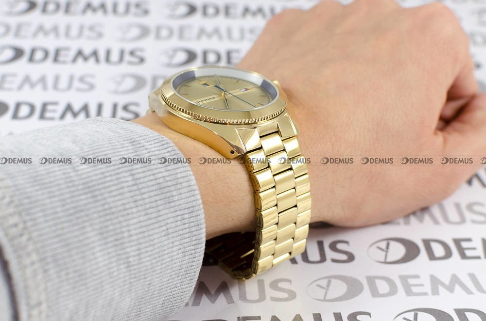 Nowość w ofercie - zegarek męski Tommy Hilfiger 1791686 to idealny prezent przede wszystkim dla Panów, którzy cenią sobie elegancję i szyk. Z niepowtarzalnym stylem tego modelu doskonale współgra stalowa, pozłacana bransoleta. Zegarek jest napędzany przez sprawdzony mechanizm kwarcowy. Okrągła, stalowa - pozłacana koperta to najlepsza gwarancja trwałości tego zegarka. Zegarek cechuje się klasą wodoodporności na poziomie WR50. Złota, wskazówkowa tarcza doskonale współgra z niezwykłym charakterem tego modelu. Do ochrony tarczy zegarka wykorzystano odporne na zarysowania i stłuczenia szkiełko mineralne.Parametry techniczne