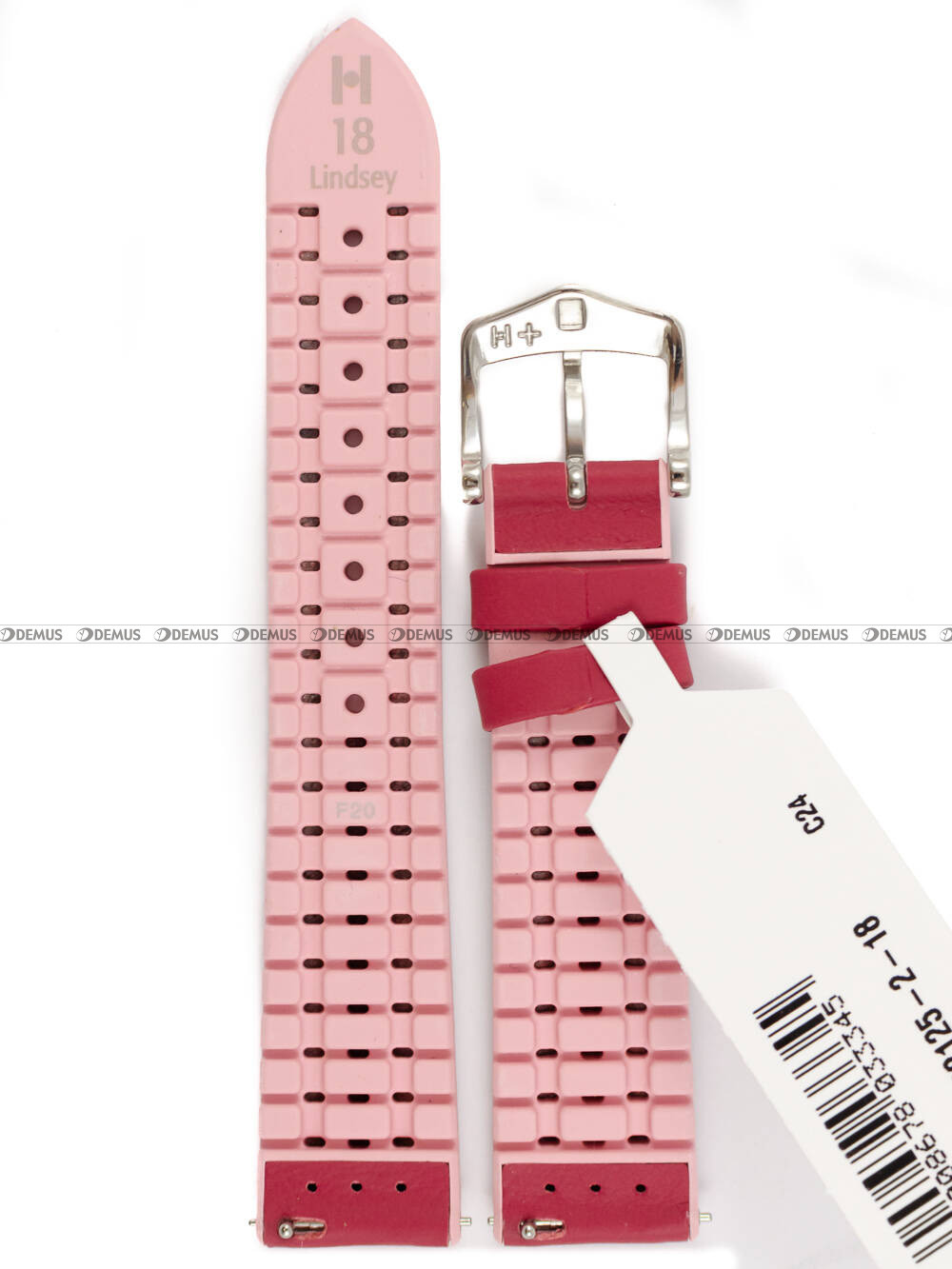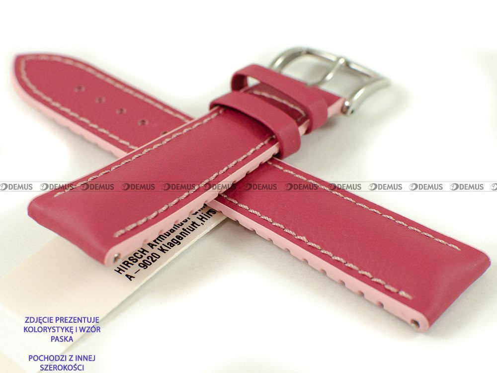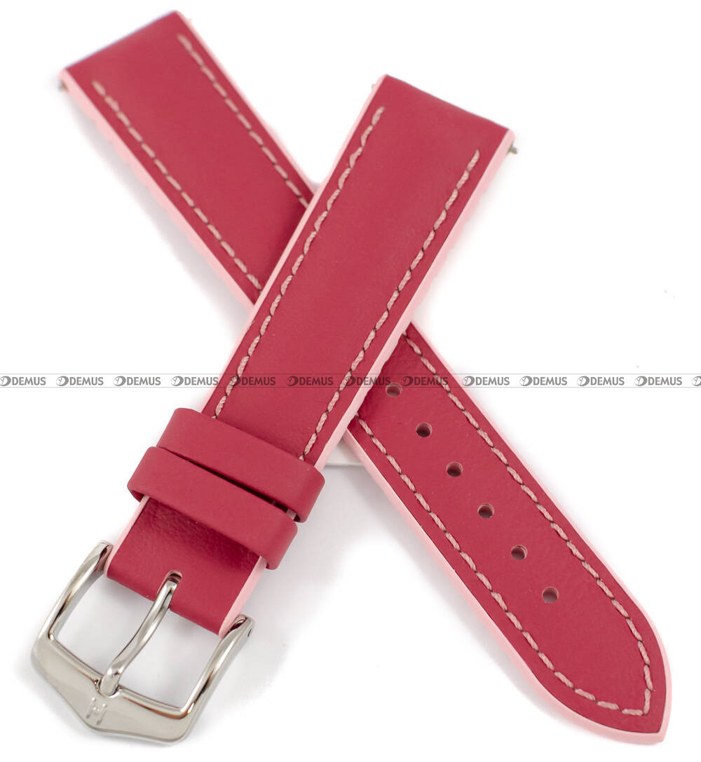 Skórzano-kauczukowy pasek do zegarka Hirsch 0922202125-2-18, 18 mm, Bordowy, Różowy