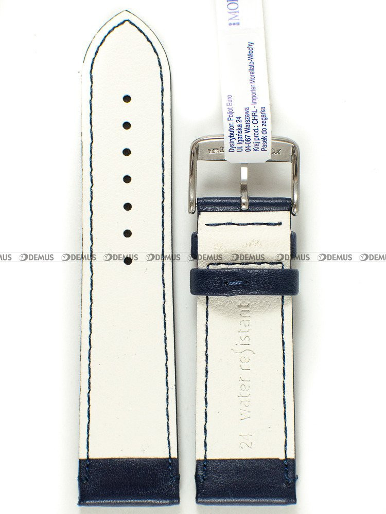 Pasek do zegarka Morellato A01X5274C91062CR24 wykonany z wygodnej, klasycznej skóry naturalnej. Produkt ma kolor niebieski. Długość paska od klamerki do ostatniego otworu wynosi 17 cm. Szerokość tego modelu to 24 mm (20 mm przy klamerce).Parametry techniczne