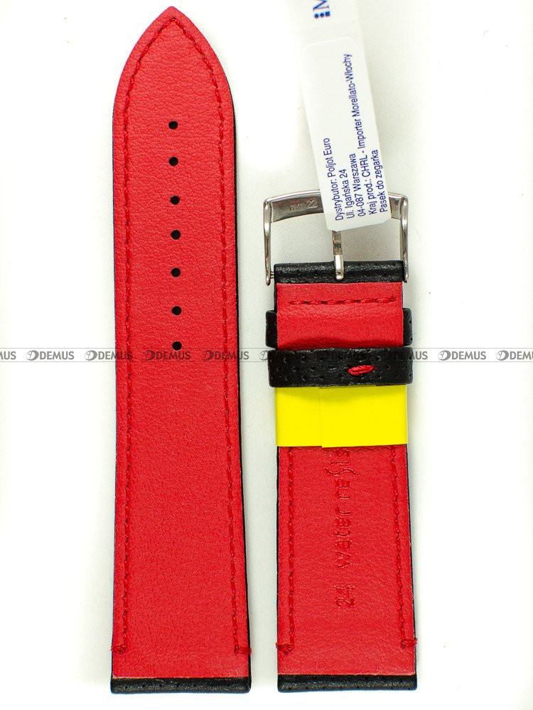 Wyjątkowy pasek do zegarka Morellato A01X4909C18883CR24, który został wykonany ze skóry naturalnej. O charakterze tego produktu decyduje w głównej mierze czarny kolor. Długość paska wynosi 17 cm (od klamerki do ostatniego otworu). Szerokość tego paska to 24 mm i 20 mm przy klamerce.Parametry techniczne