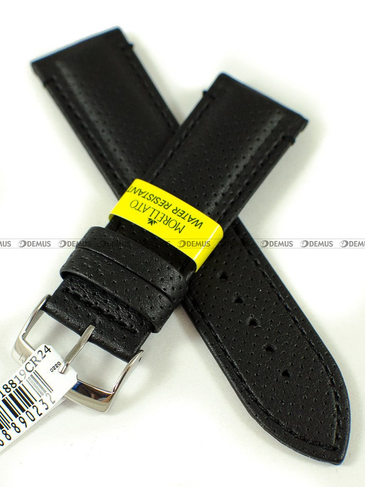 Markowy pasek do zegarka Morellato A01X4909C18819CR24 wykonany ze skóry naturalnej. O niezwykłości tego modelu paska decyduje przede wszystkim jego czarny kolor. Pasek ma długość 17 cm. Istotnym parametrem każdego paska jest jego szerokość, która w przypadku tego modelu wynosi 24 mm (20 mm przy klamerce).Parametry techniczne