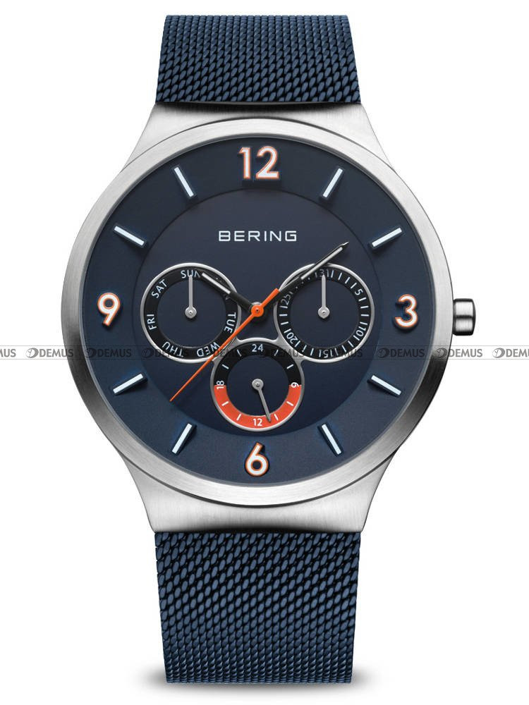 Zegarek Bering 33441-307 to model stworzony przede wszystkim dla Panów, którzy lubią podkreślić swój styl pięknym i funkcjonalnym gadżetem. Istotnym aspektem decydującym o wyglądzie tego modelu jest siateczkowa - Mesh bransoleta. Zegarek jest napędzany przez sprawdzony mechanizm kwarcowy. Okrągła, stalowa koperta jest najlepszą gwarancją trwałości tego zegarka. Niebieska, wskazówkowa tarcza bardzo dobrze pasuje do całej konstrukcji. Urządzenie prezentuje czas w tradycyjnym trybie 12-godzinnym oraz coraz bardziej popularnym trybie 24-godzinnym. Do ochrony tarczy wykorzystano odporne na zarysowania i stłuczenia szkło szafirowe.Parametry techniczne