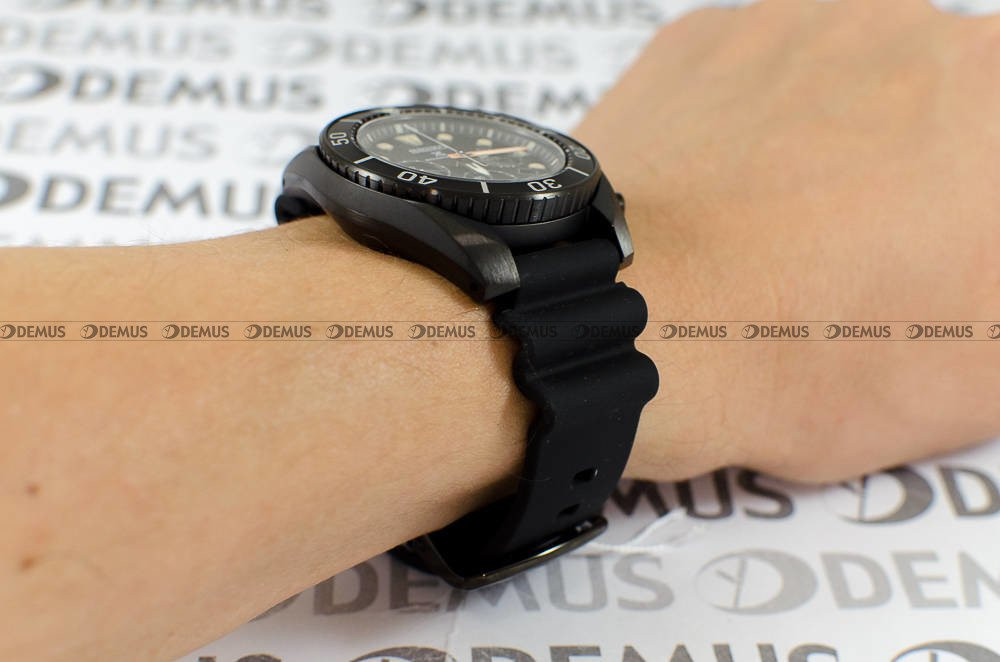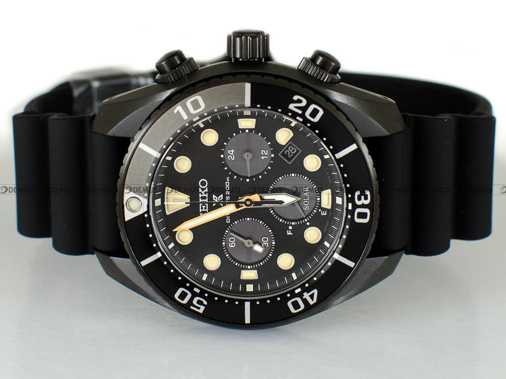 Polecamy wyjątkowy zegarek męski Seiko Prospex SSC761J1 dla Panów, którzy lubią podkreślić swój styl pięknym i funkcjonalnym gadżetem. Pięknym uzupełnieniem całości jest silikonowy pasek. Model ten jest napędzany przez mechanizm kwarcowy - solar. Okrągła, stalowa koperta świetnie sprawdza się w codziennym użytkowaniu. Urządzenie zostało dodatkowo uszczelnione przez wykorzystanie zakręcanej koronki i zakręcanego dekla. Producent deklaruje dla tego modelu klasę wodoszczelności WR200. Czarna, wskazówkowa tarcza doskonale współgra z niezwykłym charakterem tego modelu. Urządzenie prezentuje czas w tradycyjnej 12-godzinnej formie oraz w trybie 24-godzinnym. Zastosowany w tym modelu chronograf może mierzyć czas do godziny z dokładnością do 0,2 sekundy. Z myślą o wygodzie użytkownika wskazówki zegarka zostały pokryte warstwą fosforyzującą LumiBrite. Do ochrony tarczy wykorzystano odporne na zarysowania i stłuczenia szkło szafirowe.Parametry techniczne