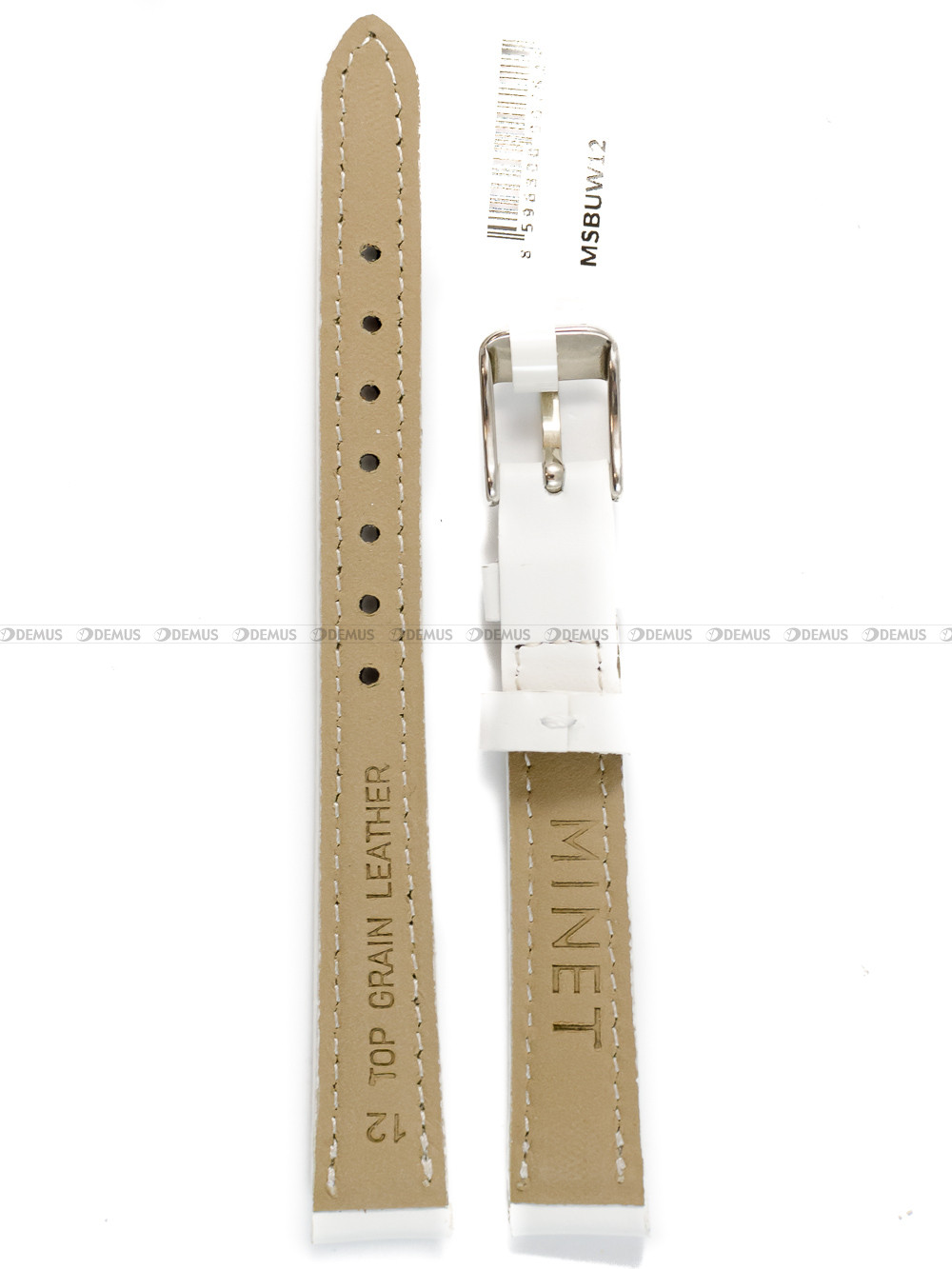 Skórzany pasek do zegarka Minet MSBUW14, 14 mm, Biały