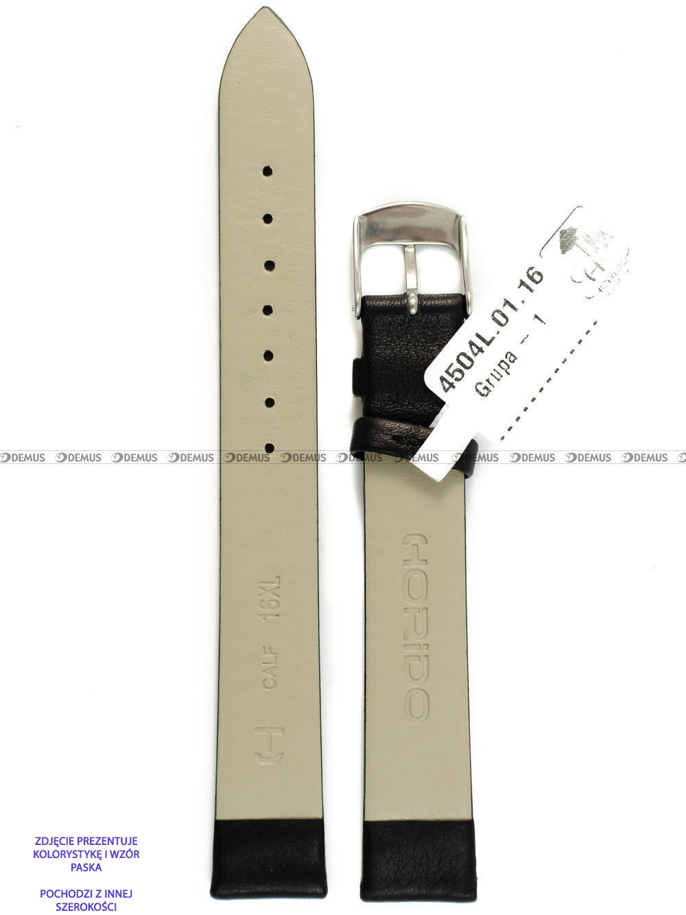 Oryginalny pasek do zegarka Horido 4504L.01.14S z wygodnej, klasycznej skóry naturalnej. O niezwykłości tego modelu paska decyduje przede wszystkim jego czarny kolor. Długość paska od klamerki do ostatniego otworu wynosi 18,5 cm. Szerokość tego modelu to 14 mm (12 mm przy klamerce).Parametry techniczne