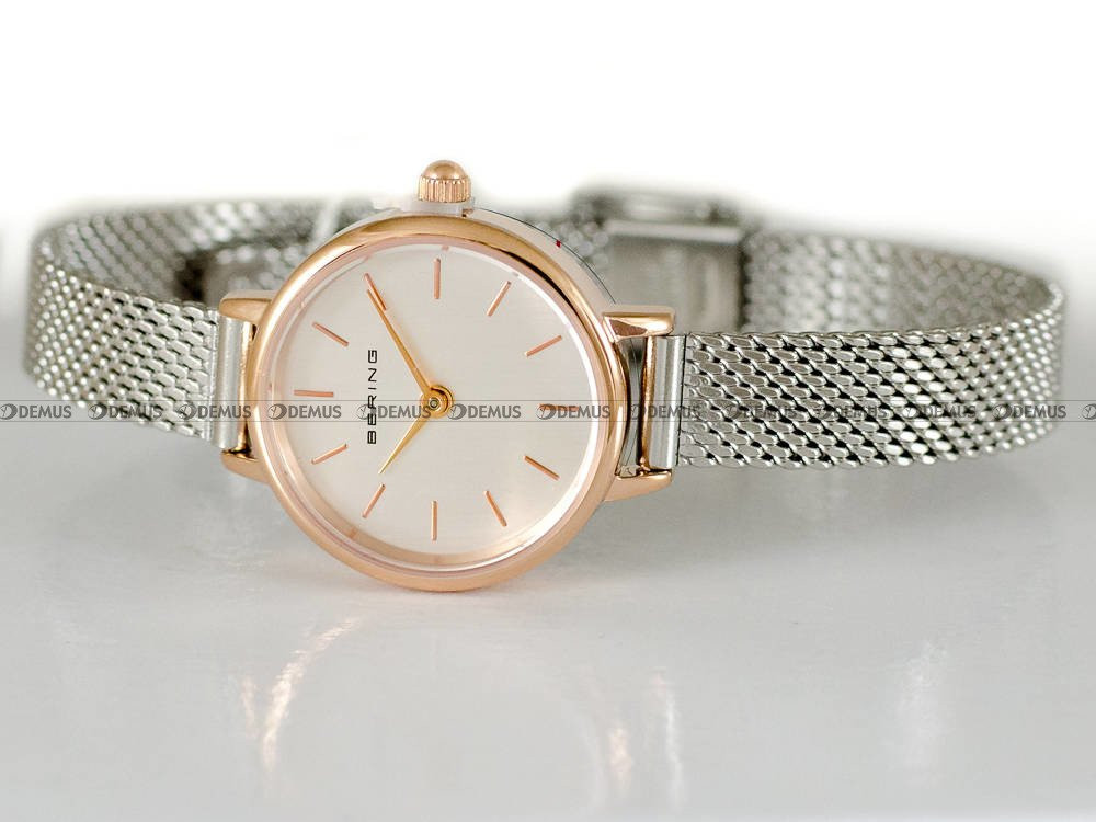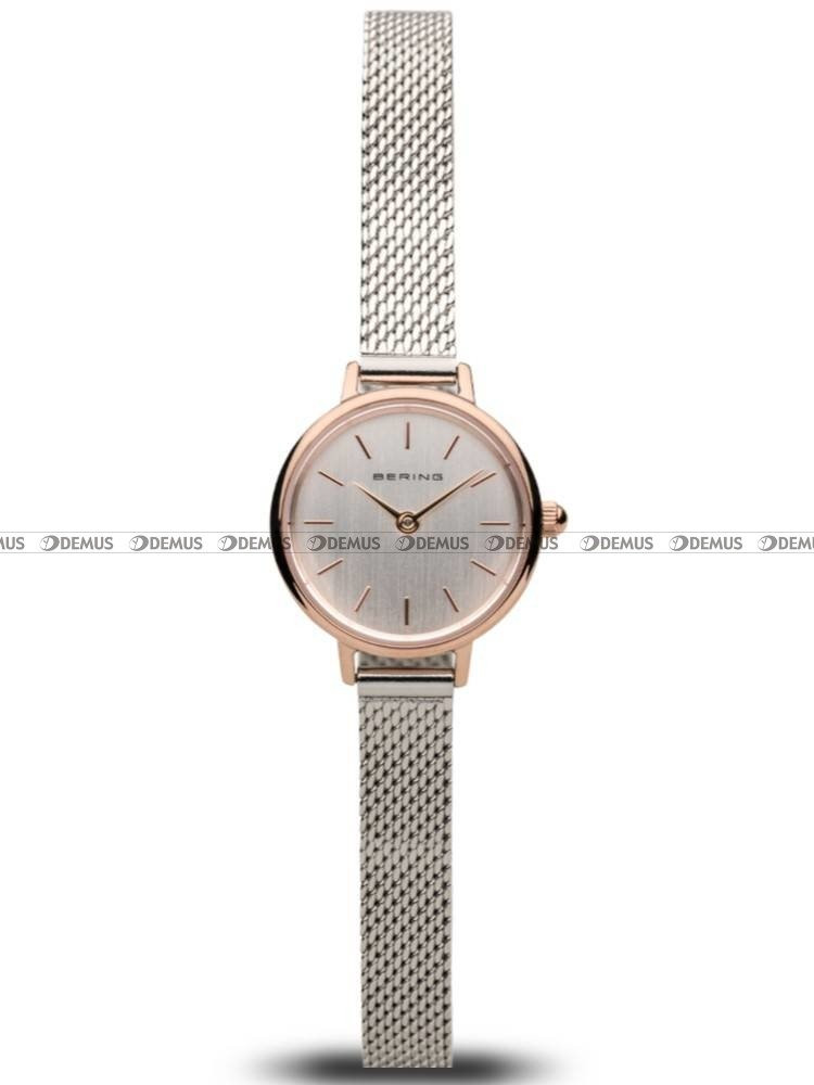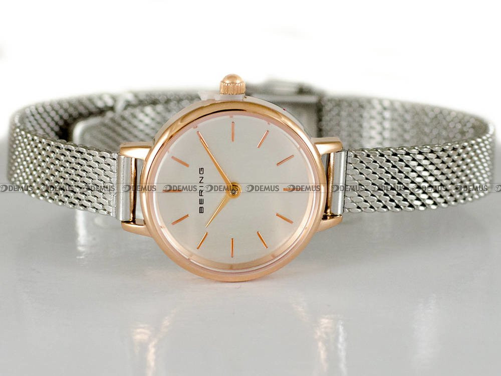 Model Bering 11022-064 to świetny prezent głównie dla Pań lubiących szykowne dodatki. Ważnym elementem decydującym o estetyce całości jest siateczkowa - Mesh bransoleta. Zegarek jest napędzany przez ceniony za niezawodność mechanizm kwarcowy. Stalowa - pozłacana koperta świetnie sprawdza się w codziennym użytkowaniu.Srebrna, wskazówkowa tarcza to połączenie stylu i funkcjonalności. Do ochrony tarczy zegarka wykorzystano odporne na zarysowania i stłuczenia szkiełko szafirowe.