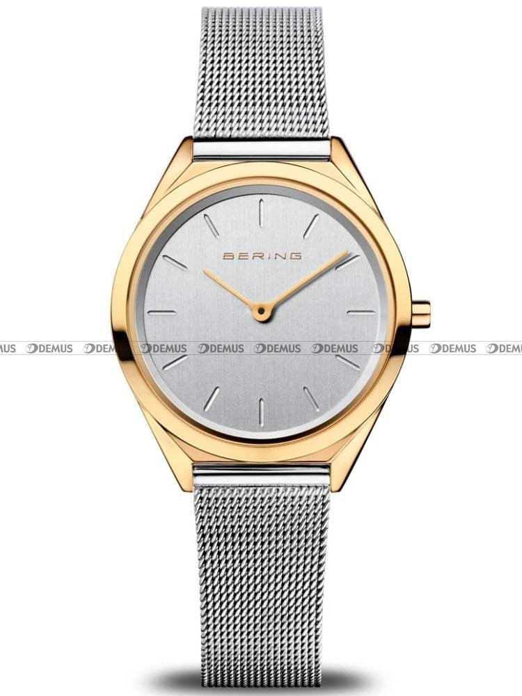 Model damski Bering 17031-010 to model zaprojektowany głównie dla Pań, które cenią sobie dodatki z charakterem. Ważnym elementem wykończenia urządzenia jest siateczkowa - Mesh bransoleta. Sercem tego modelu jest ceniony za niezawodność mechanizm kwarcowy. Okrągła, stalowa - pozłacana koperta skutecznie chroni mechanizm zegarka, jednocześnie zapewniając odpowiedni komfort. Klasyczna, wskazówkowa tarcza w kolorze srebrnym jest wyrazistym i jednocześnie funkcjonalnym dopełnieniem tego modelu. Do ochrony tarczy wykorzystano odporne na zarysowania i stłuczenia szkło szafirowe.Parametry techniczne