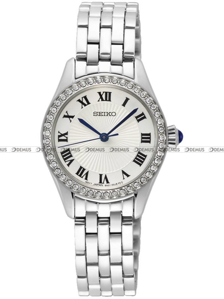 Gorąco polecamy markowy zegarek damski Seiko Classic SUR333P1 dla Pań, które lubią podkreślić swój niepowtarzalny styl szykownym dodatkiem. Jednym z ważnych elementów decydujących o wyglądzie zegarka jest stalowa bransoleta. Sercem tego zegarka jest niezawodny mechanizm kwarcowy. Okrągła, stalowa wysadzana kryształkami koperta jest najlepszą gwarancją trwałości tego zegarka. Srebrna, wskazówkowa tarcza jest wyrazistym i jednocześnie funkcjonalnym dopełnieniem tego modelu. Do ochrony tarczy wykorzystano odporne na zarysowania i stłuczenia szkło mineralne utwardzane.Parametry techniczne