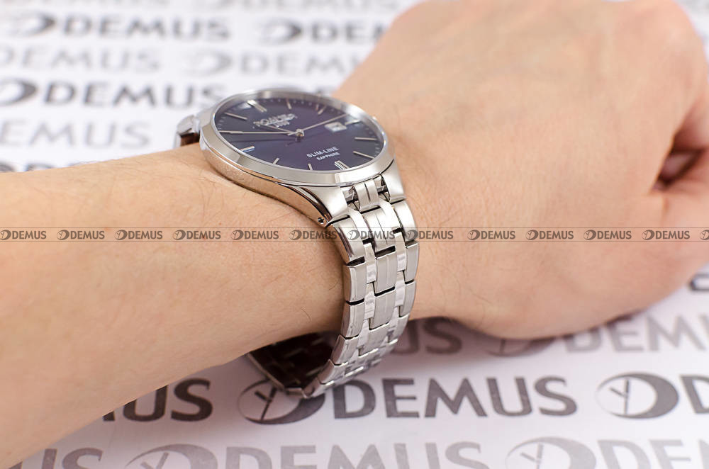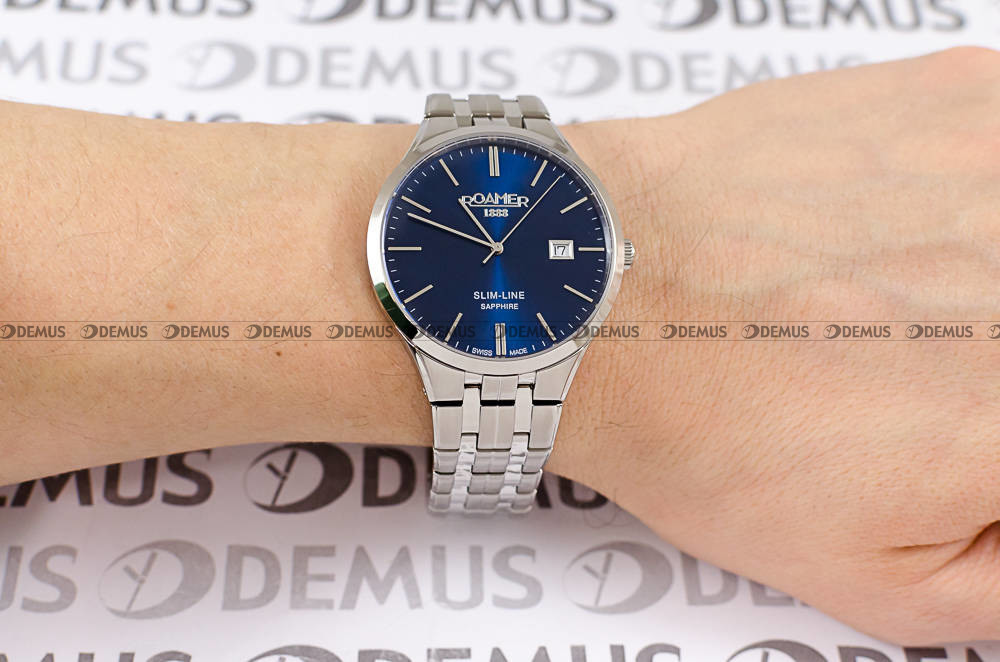 Polecamy oryginalny zegarek męski Roamer 512833 41 45 20 dla Panów, którzy lubią podkreślić swój styl pięknym i funkcjonalnym gadżetem. Zegarek nie byłby tym, czym jest, gdyby nie stalowa bransoleta. Sercem tego urządzenia jest niezawodny mechanizm kwarcowy. Stalowa koperta skutecznie chroni mechanizm i jednocześnie gwarantuje odpowiedni komfort. Zegarek cechuje się klasą wodoodporności na poziomie WR50. Niebieska, wskazówkowa tarcza to połączenie stylu i funkcjonalności. Dzięki datownikowi użytkownik może błyskawicznie określić aktualny dzień miesiąca. Do ochrony tarczy wykorzystano odporne na zarysowania i stłuczenia szkiełko szafirowe.Parametry techniczne