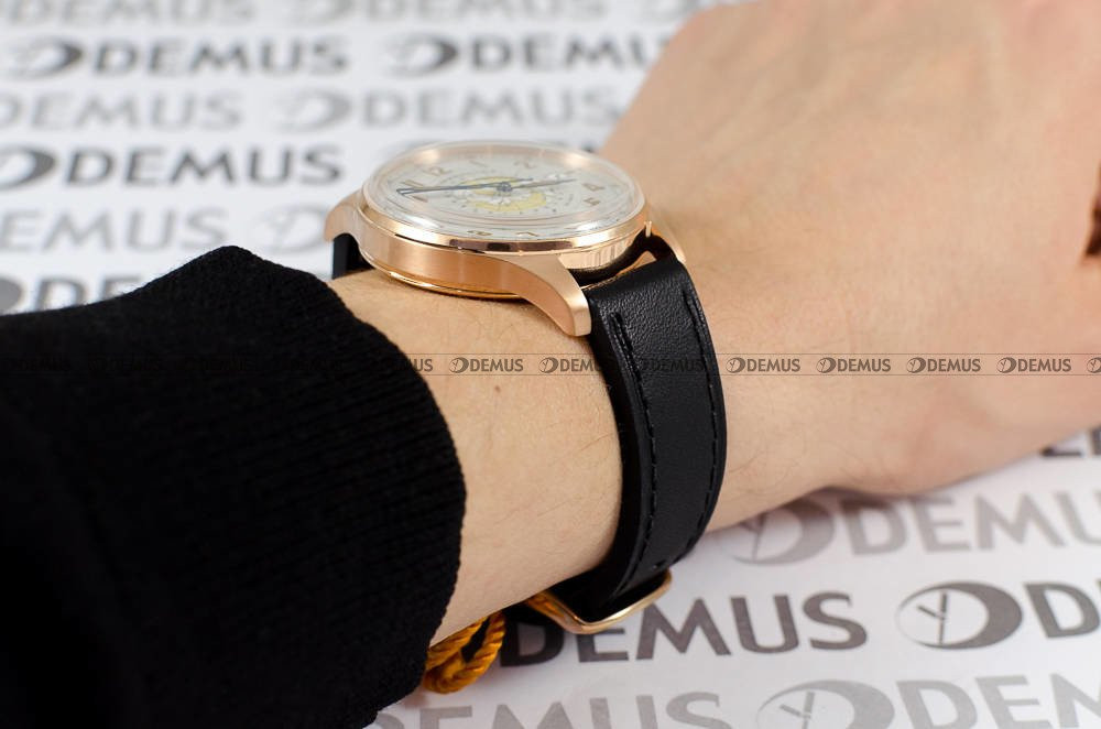 wykonana z wysokiej jakości stali szlachetnej. Stop ten charakteryzuje się najwyższym stopniem odporności na korozję. Koperta jest pozłacana