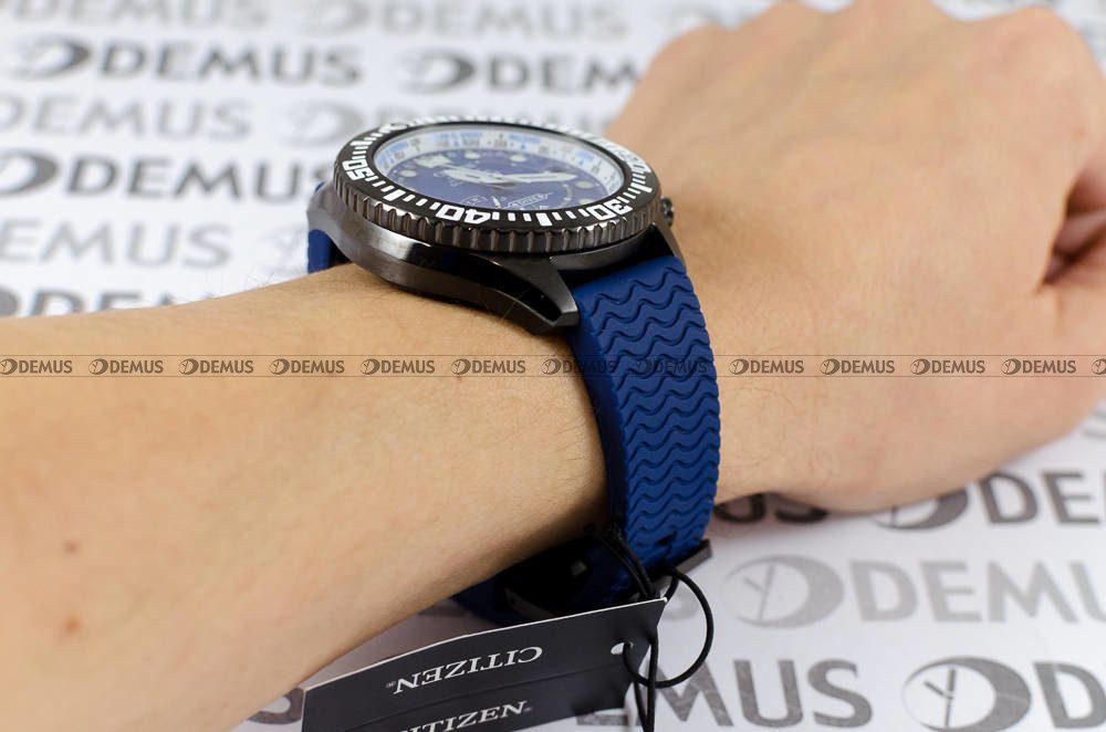Zachęcamy Państwa do zapoznania się z ofertą tego zegarka - męski Citizen Promaster CC5006-06L to propozycja dla Panów, którzy cenią sobie dodatki z charakterem. Zegarek został wyposażony w poliuretanowy pasek. Urządzenie jest napędzane przez mechanizm kwarcowy - solar. Okrągła, tytanowa koperta to najlepsza gwarancja trwałości tego modelu. Zegarek został dodatkowo uszczelniony przy użyciu zakręcanego dekla i zakręcanej koronki. O najwyższej jakości zegarka świadczy m.in. klasa wodoodporności WR200.Klasyczna, wskazówkowa tarcza w kolorze niebieskim to połączenie stylu i funkcjonalności. Do ochrony tarczy wykorzystano szkło mineralne, które zapewnia wysoką odporność na zarysowanie i stłuczenie.