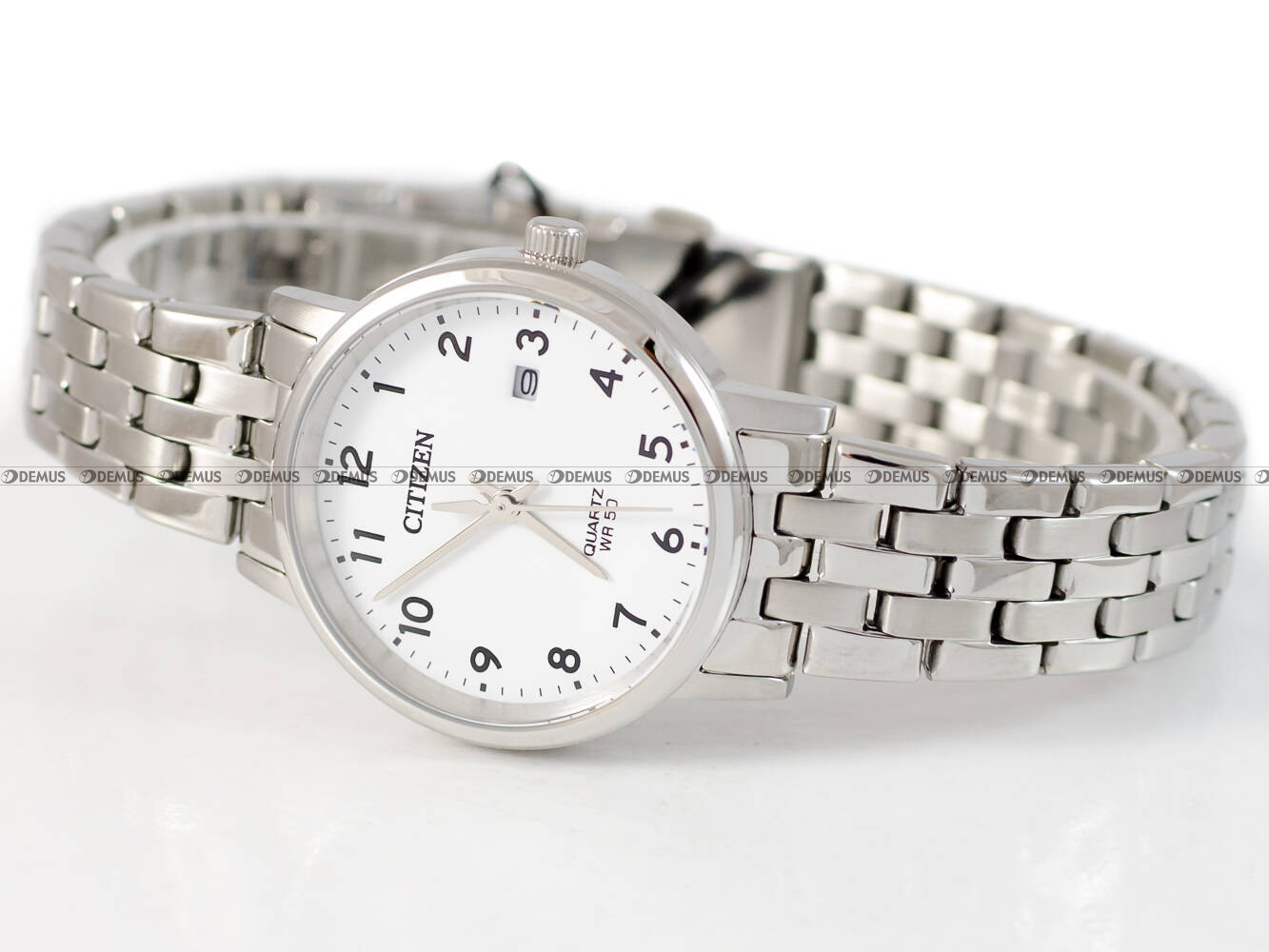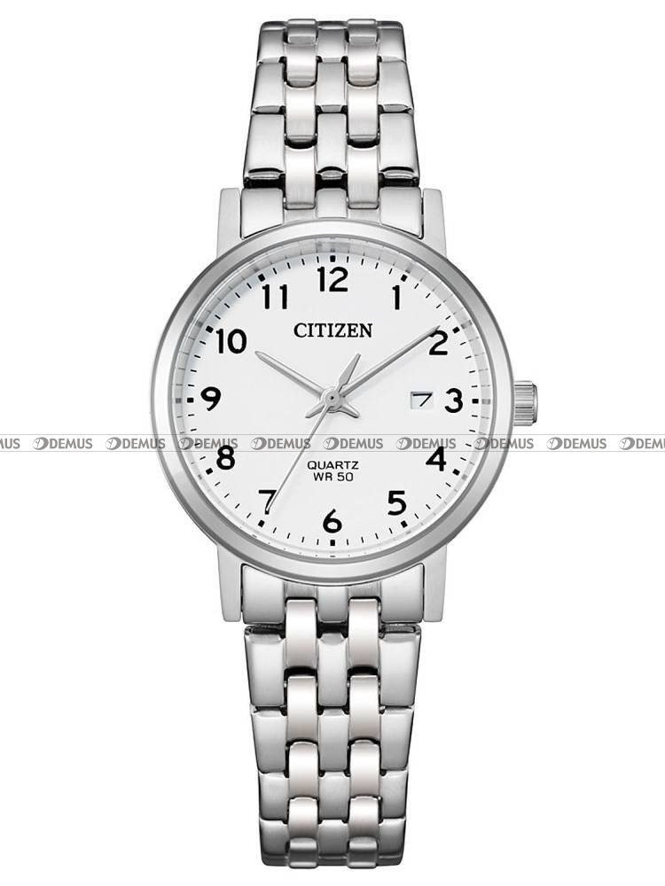 Proponujemy Państwu oryginalny zegarek damski Citizen Elegance EU6090-54A dla Pań dbających o każdy aspekt stylizacji. Pięknym uzupełnieniem całości jest stalowa bransoleta. Urządzenie jest napędzane przez niezawodny mechanizm kwarcowy zasilany baterią. Okrągła, stalowa koperta jest najlepszą gwarancją trwałości tego zegarka. Producent deklaruje dla tego modelu klasę wodoszczelności WR50.Klasyczna, wskazówkowa tarcza w kolorze białym jest elementem wyróżniającym ten model spośród innych zegarków. Datownik pokazuje aktualny dzień miesiąca. Tarcza urządzenia jest chroniona przez odporne na zarysowania i stłuczenia szkiełko mineralne.