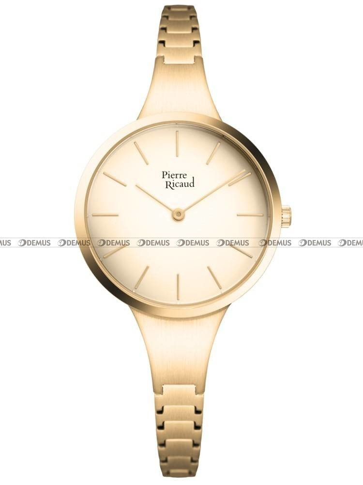 Zegarek damski Pierre Ricaud P22093.1111Q to produkt przeznaczony przede wszystkim dla Pań ceniących sobie elegancję i styl. Ważnym elementem decydującym o estetyce całości jest stalowa, pozłacana bransoleta. Sercem tego zegarka jest niezawodny mechanizm kwarcowy zasilany baterią. Stalowa - pozłacana koperta to połączenie komfortu użytkownika i trwałości urządzenia. Złota, wskazówkowa tarcza doskonale współgra z niezwykłym charakterem tego modelu. Do ochrony tarczy wykorzystano odporne na zarysowania i stłuczenia szkiełko mineralne.Parametry techniczne