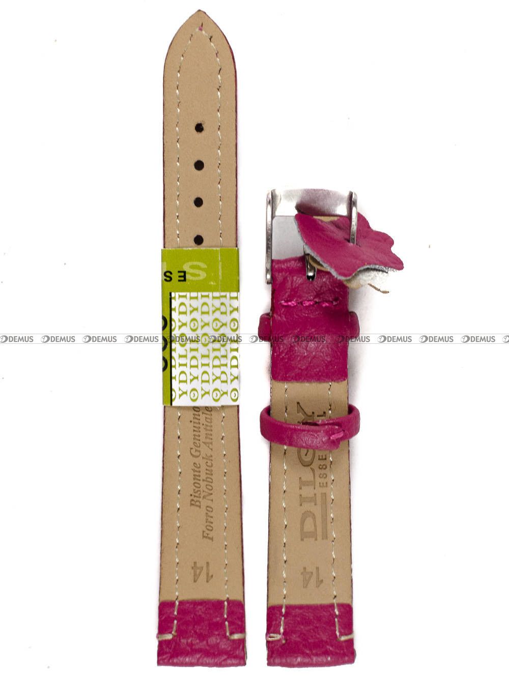 Gorąco polecamy wyjątkowy pasek do zegarka Diloy P178.14.14 z tradycyjnej, naturalnej skóry. Pasek jest koloru purpurowego. Długość paska wynosi 15 cm liczona od klamerki do ostatniego otworu. Szerokość tego paska to 14 mm i 12 mm przy klamerce.Parametry techniczne