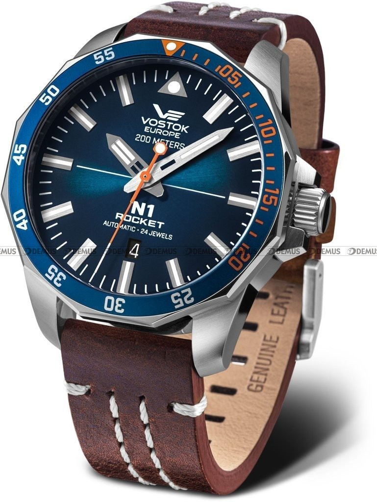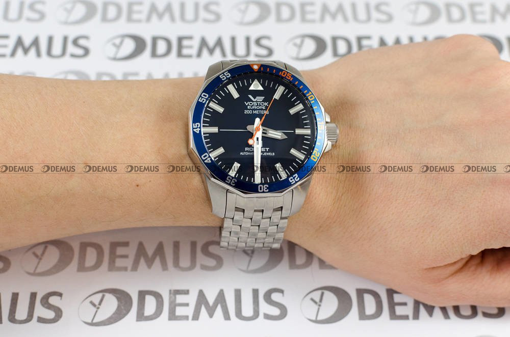 Czasomierz wyposażono w mechanizm automatyczny, 24 kamieniowy, który napędza ruch ręki, pozwalając zapomnieć o ręcznym dokręcaniu. Niezwykle wyraźna tarcza o intensywnym, granatowym kolorze sprawia, że cyferblat jest bardzo czytelny, a pokrycie wskazówek i indeksów specjalną warstwą fosforyzującą Super Luminova, pozwala na odczytanie godziny również w ciemności, lub pod wodą, na większych głębokościach. Za wodoszczelność zegarka męskiego Vostok Europe Rocket N1 NH35A-225A615B odpowiada nie tylko klasa do 20 ATM, ale również zakręcany dekiel i korona, dzięki którym w modelu można swobodnie nurkować z profesjonalnym sprzętem.