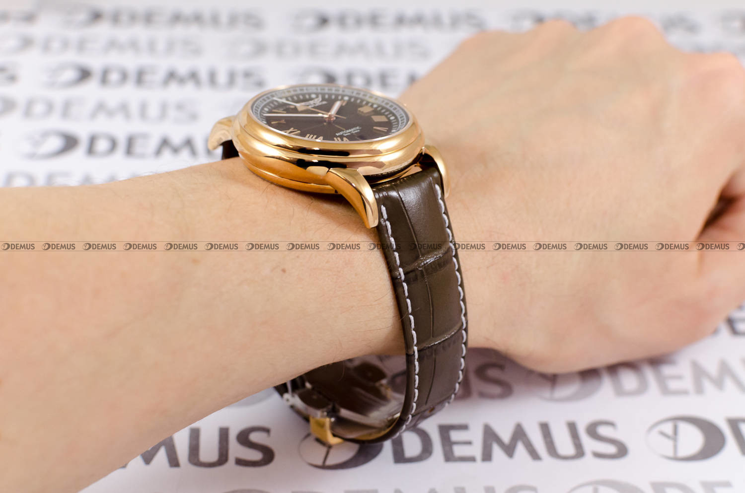 wykonana z wysokiej jakości stali szlachetnej. Stop ten charakteryzuje się najwyższym stopniem odporności na korozję. Koperta jest pozłacana