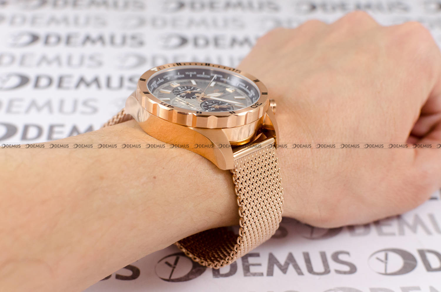 wykonana z wysokiej jakości stali szlachetnej. Stop ten charakteryzuje się najwyższym stopniem odporności na korozję. Koperta jest pozłacana