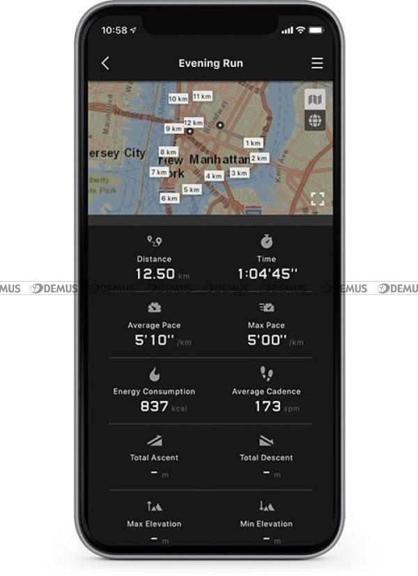 Rejestrowanie czasu, pokonanej odległości, tempa, oraz liczbie spalonych kalorii w trakcie treningu