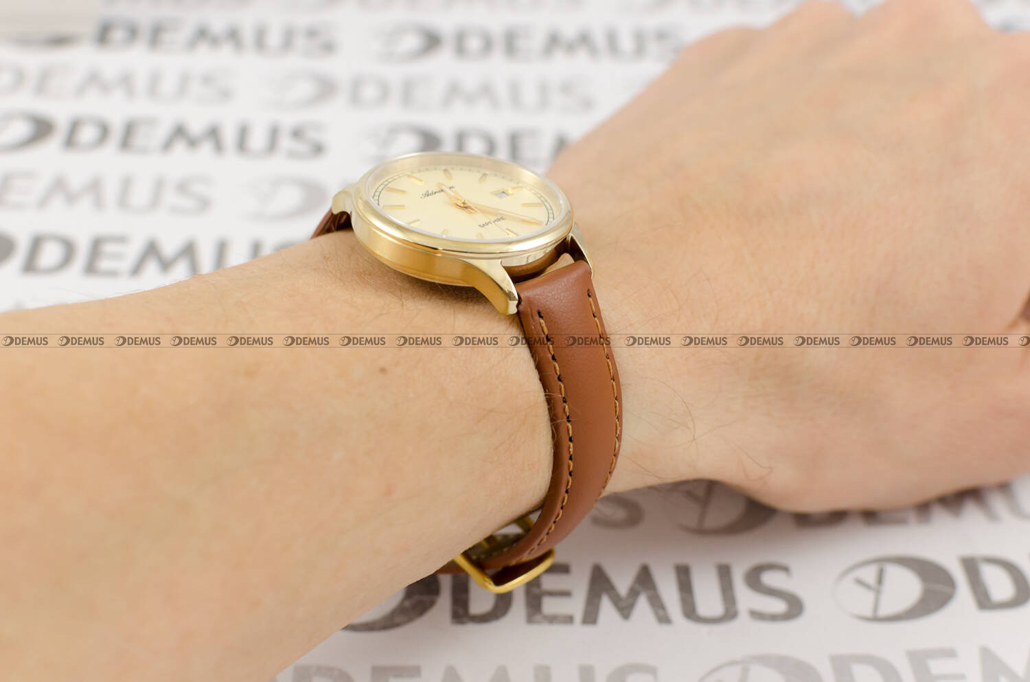wykonana z wysokiej jakości stali szlachetnej. Stop ten charakteryzuje się najwyższym stopniem odporności na korozję. Koperta jest pozłacana