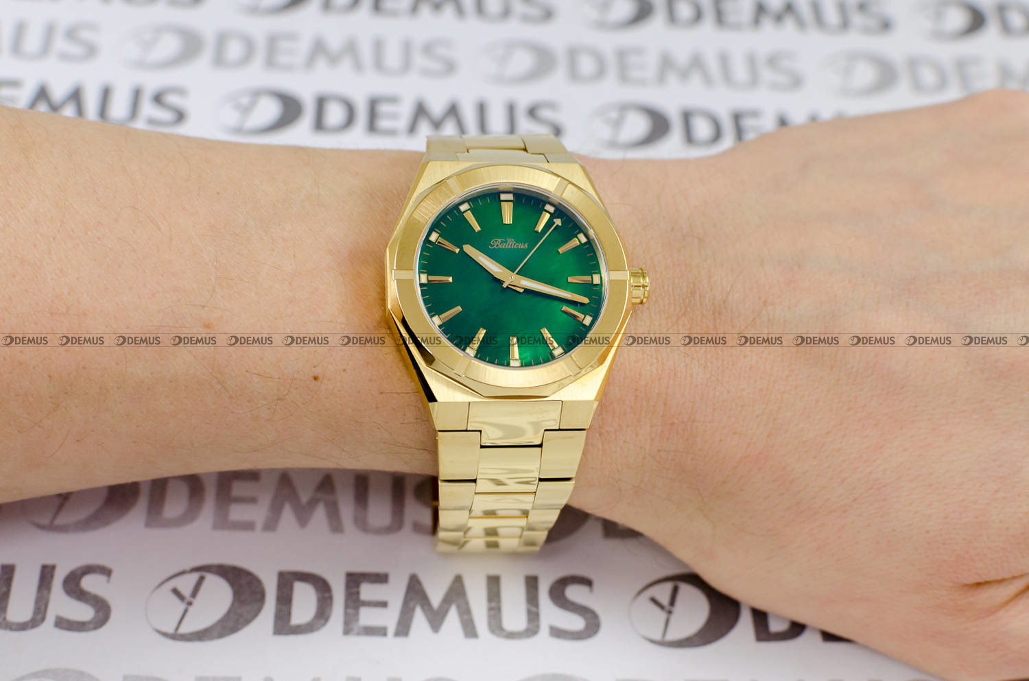 Zegarek Balticus Gwiezdny Pył 37 mm, zielona masa perłowa, złoty, bez daty