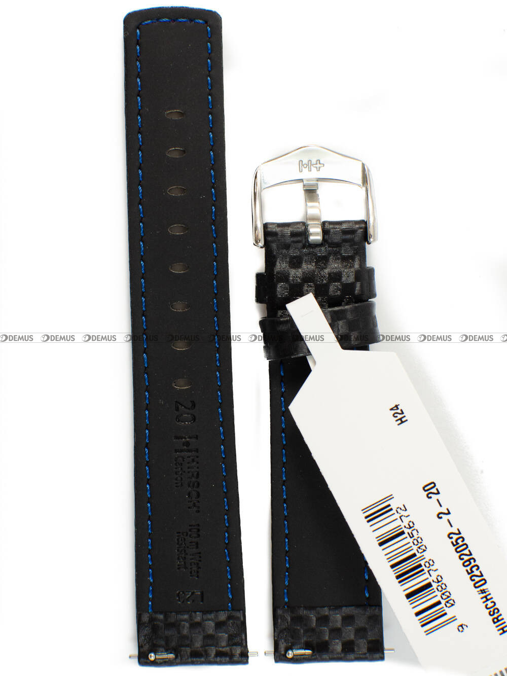 Pasek skórzany do zegarka - Hirsch Carbon 02592052-2-20 - 20 mm