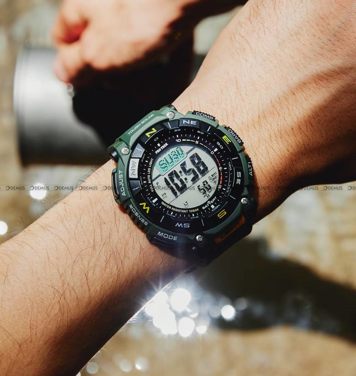 równomierne podświetlenie tarczy zegarka diodą elektrolimenscencyjną z funkcją automatycznego podświetlenia po skierowaniu zegarka w kierunku wzroku.
