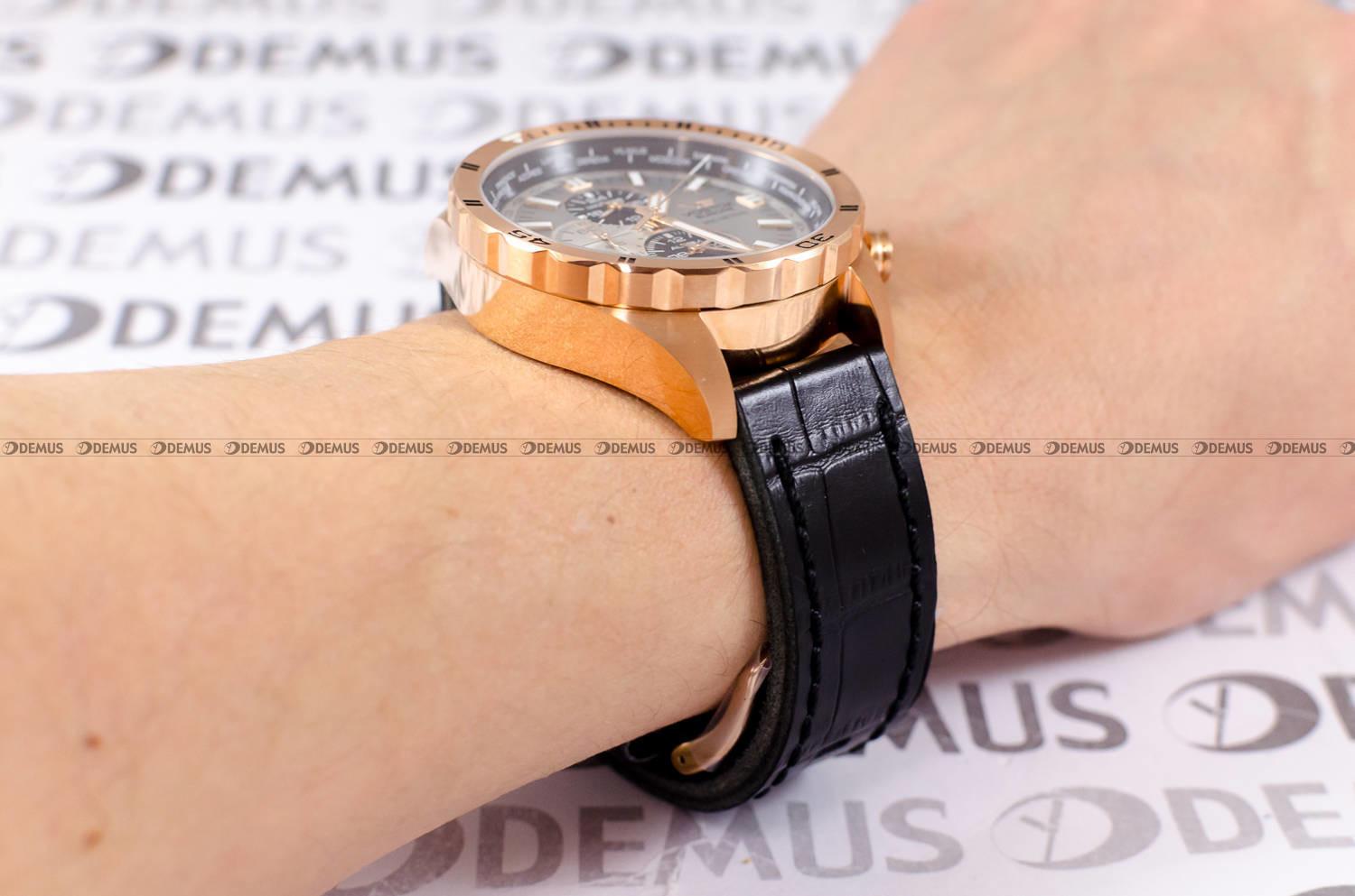 wykonana z wysokiej jakości stali szlachetnej. Stop ten charakteryzuje się najwyższym stopniem odporności na korozję. Koperta jest pozłacana