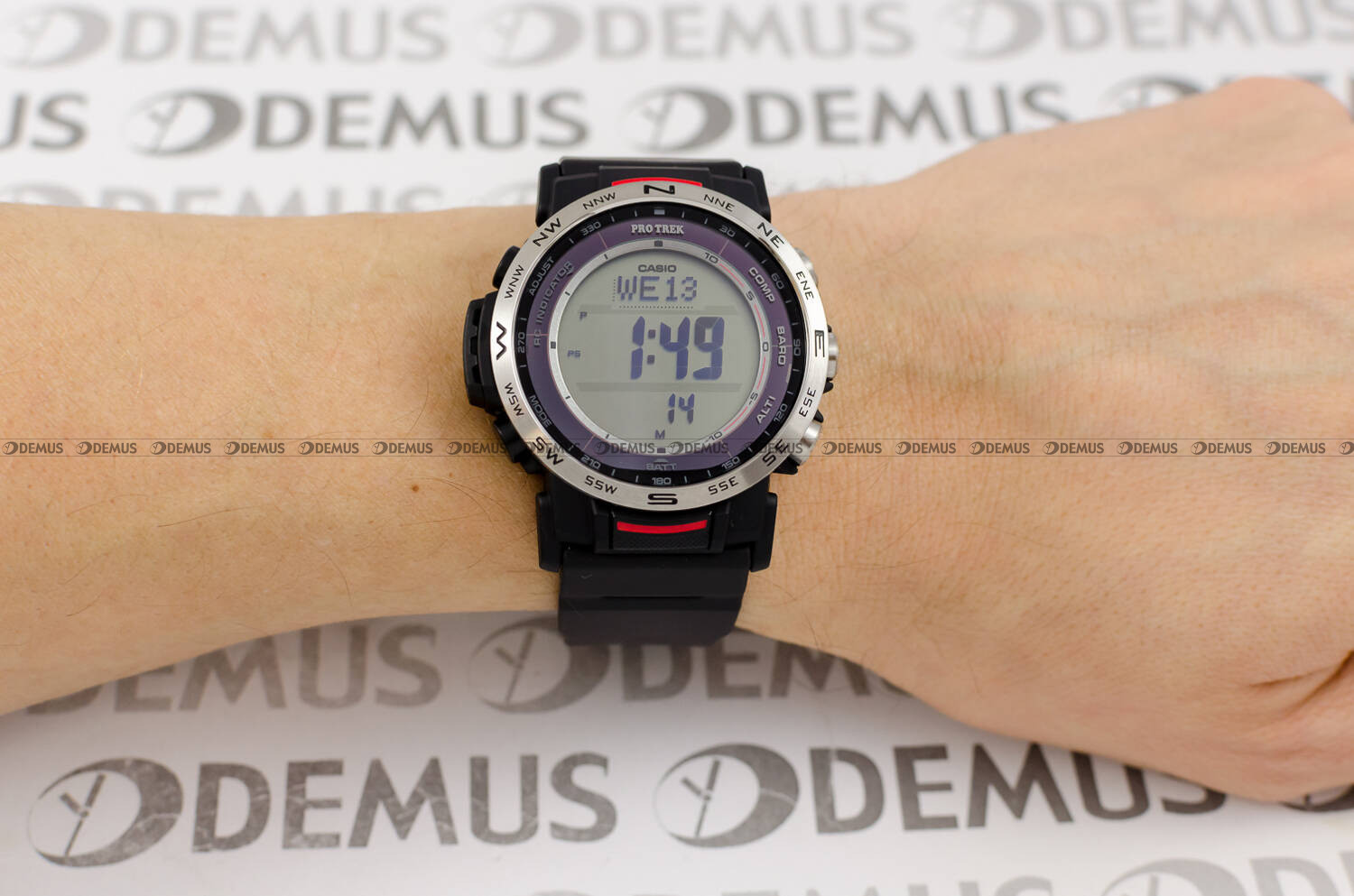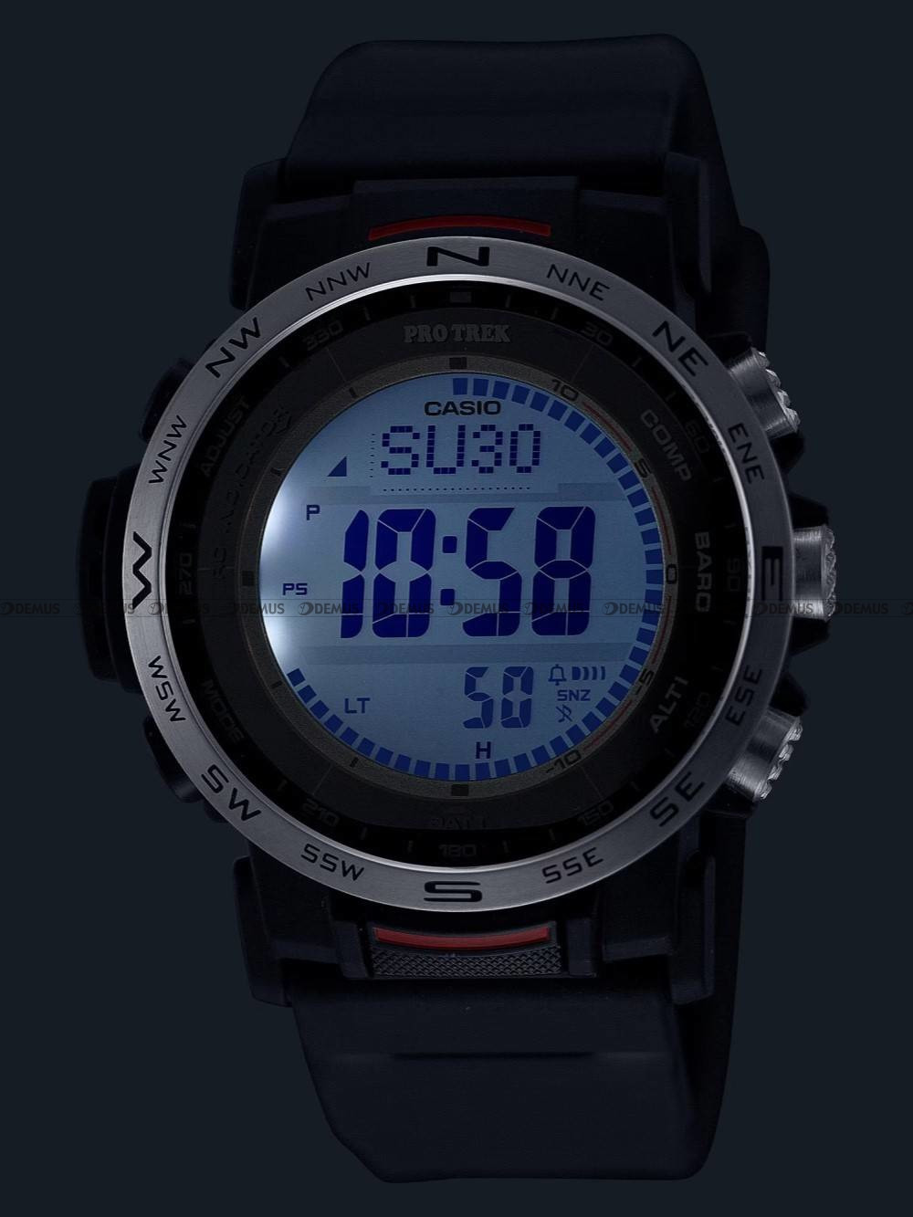 równomierne podświetlenie tarczy zegarka diodą elektrolimenscencyjną z funkcją automatycznego podświetlenia po skierowaniu zegarka w kierunku wzroku.
