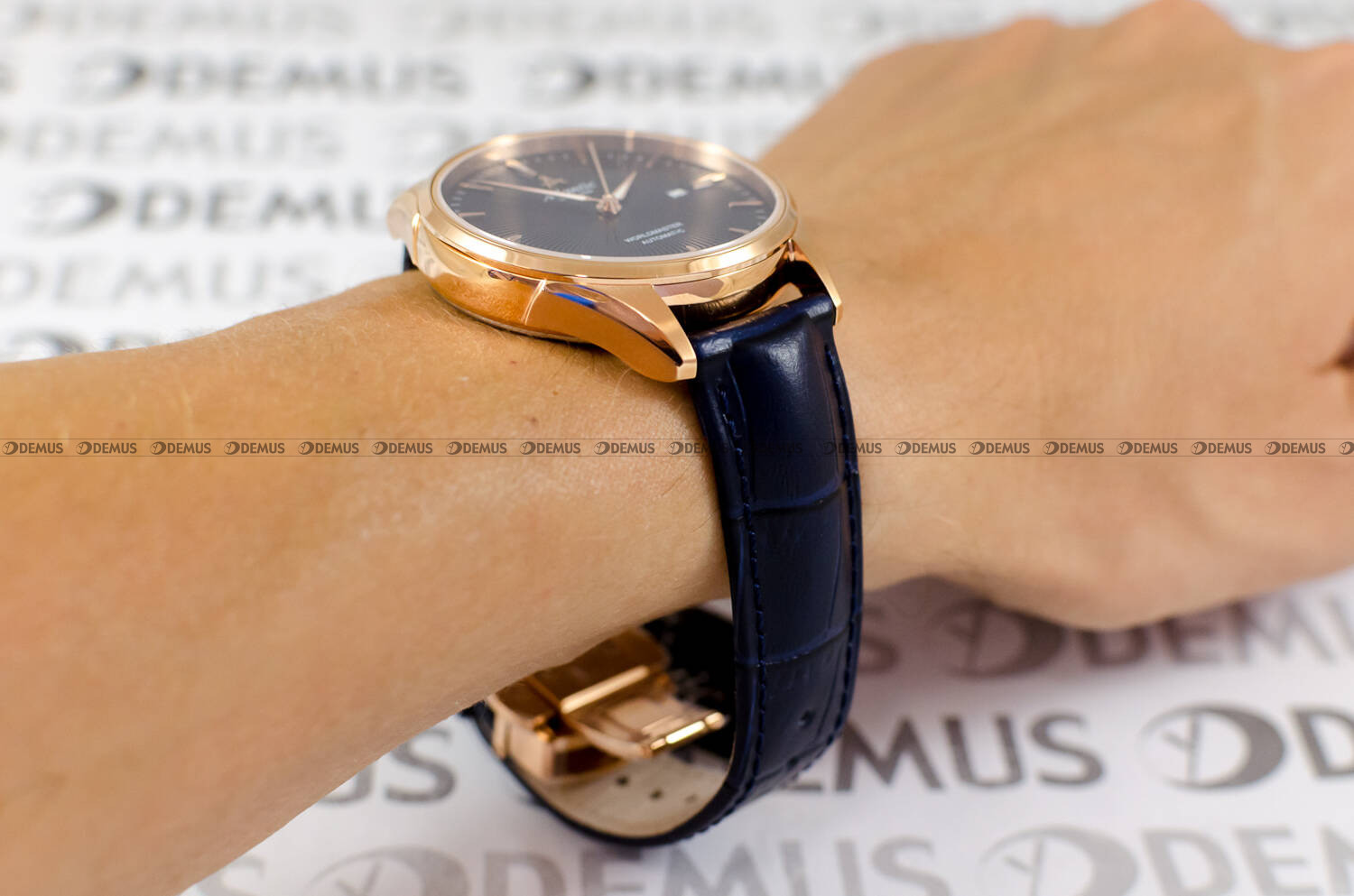 wykonana z wysokiej jakości stali szlachetnej. Stop ten charakteryzuje się najwyższym stopniem odporności na korozję. Koperta jest pozłacana