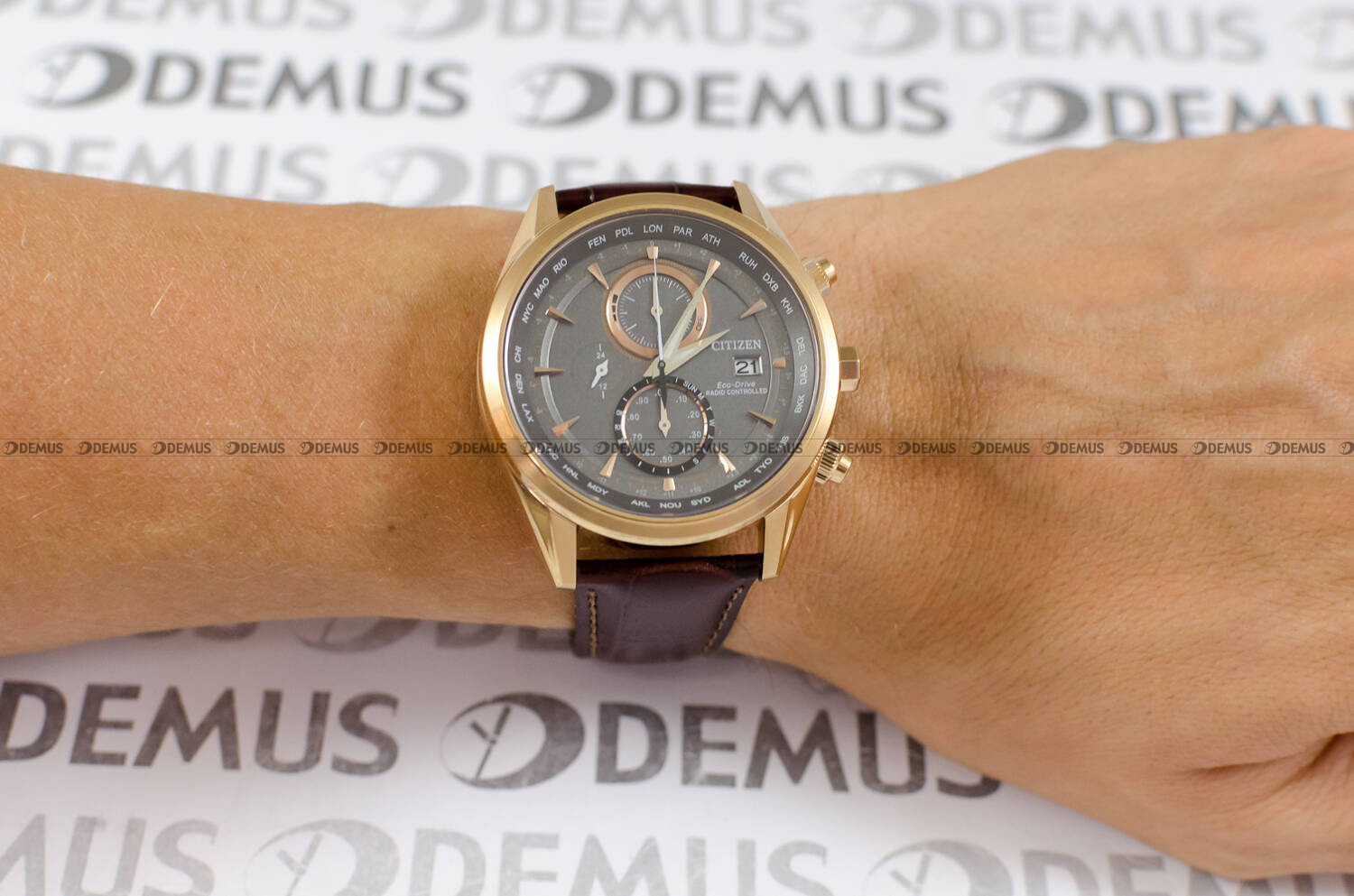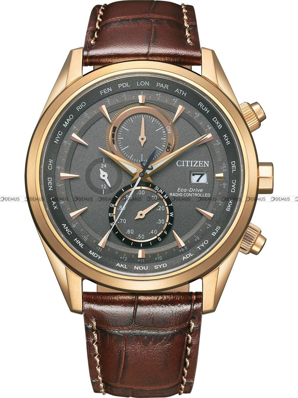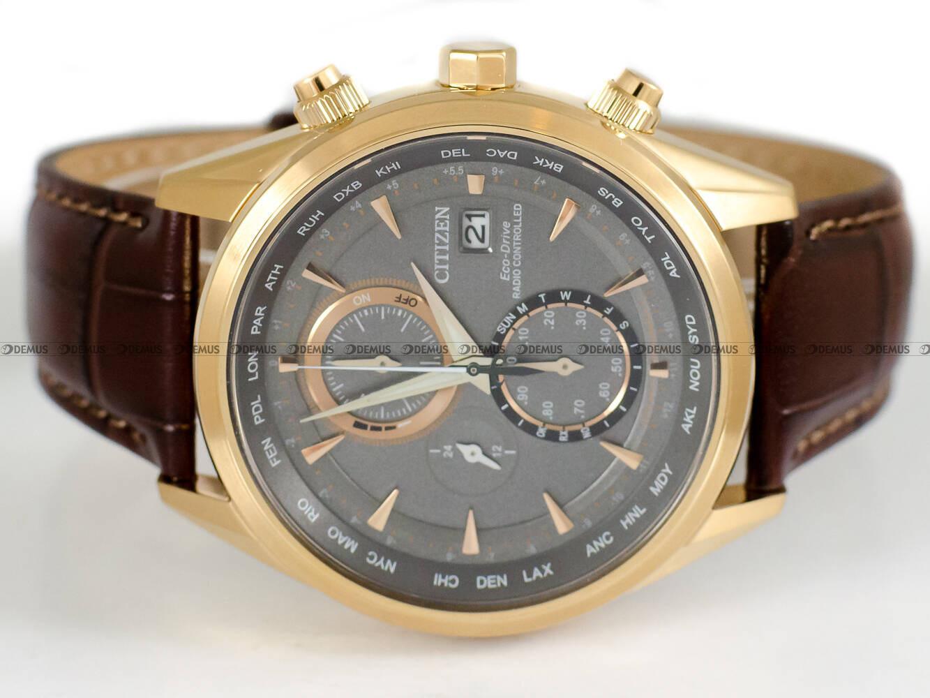 synchronizacja zegarka falami radiowymi ze wzorcem z zegara atomowego (Niemcy, Anglia, Ameryka Płn, Japonia)