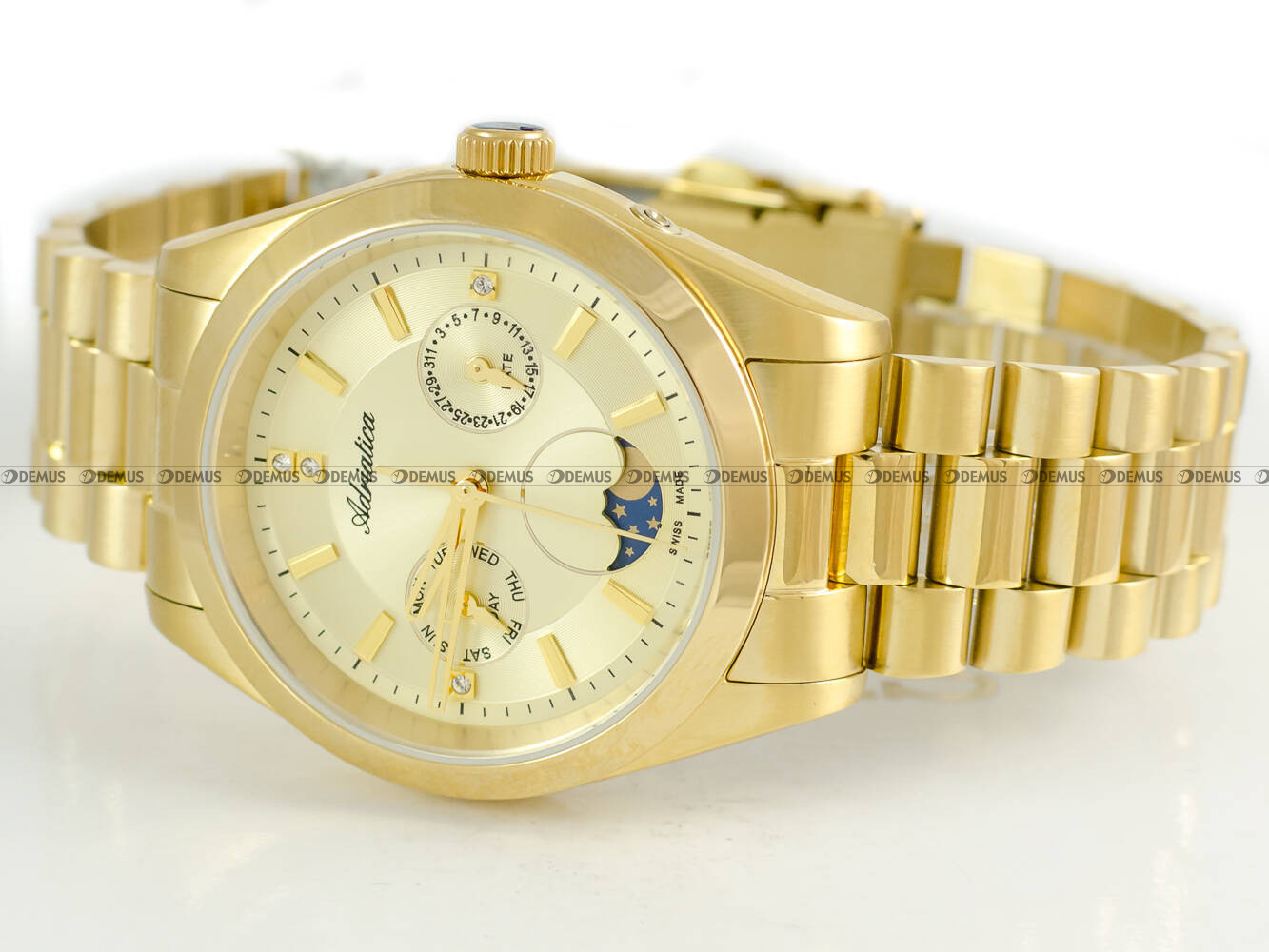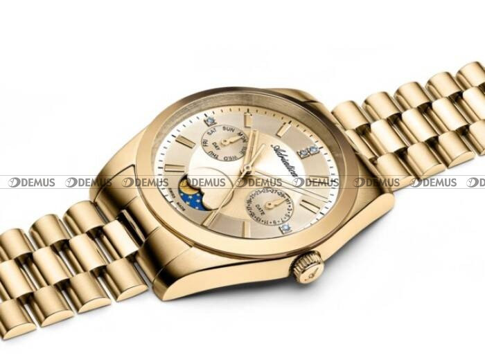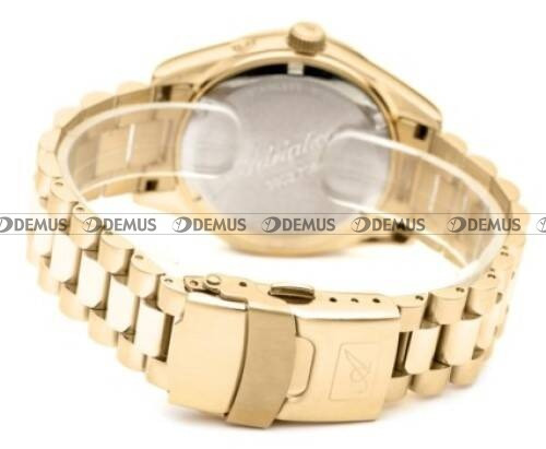 wykonana z wysokiej jakości stali szlachetnej. Stop ten charakteryzuje się najwyższym stopniem odporności na korozję. Koperta jest pozłacana
