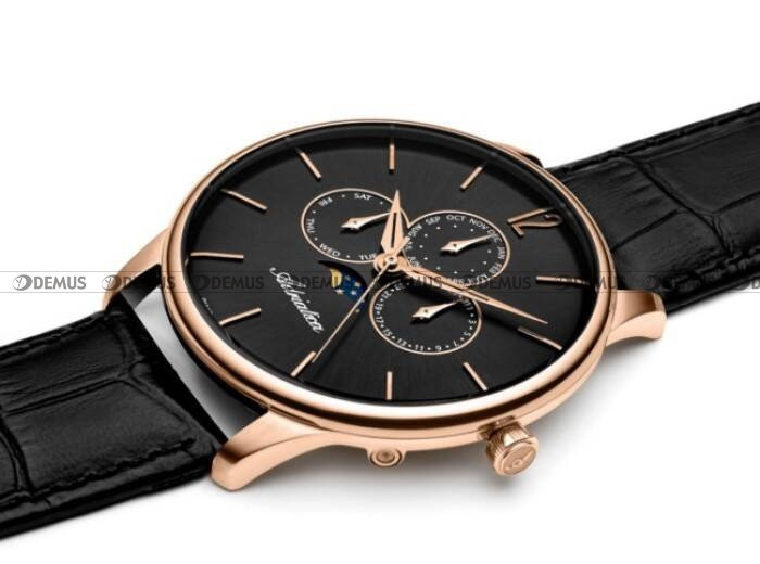 wykonana z wysokiej jakości stali szlachetnej. Stop ten charakteryzuje się najwyższym stopniem odporności na korozję. Koperta jest pozłacana