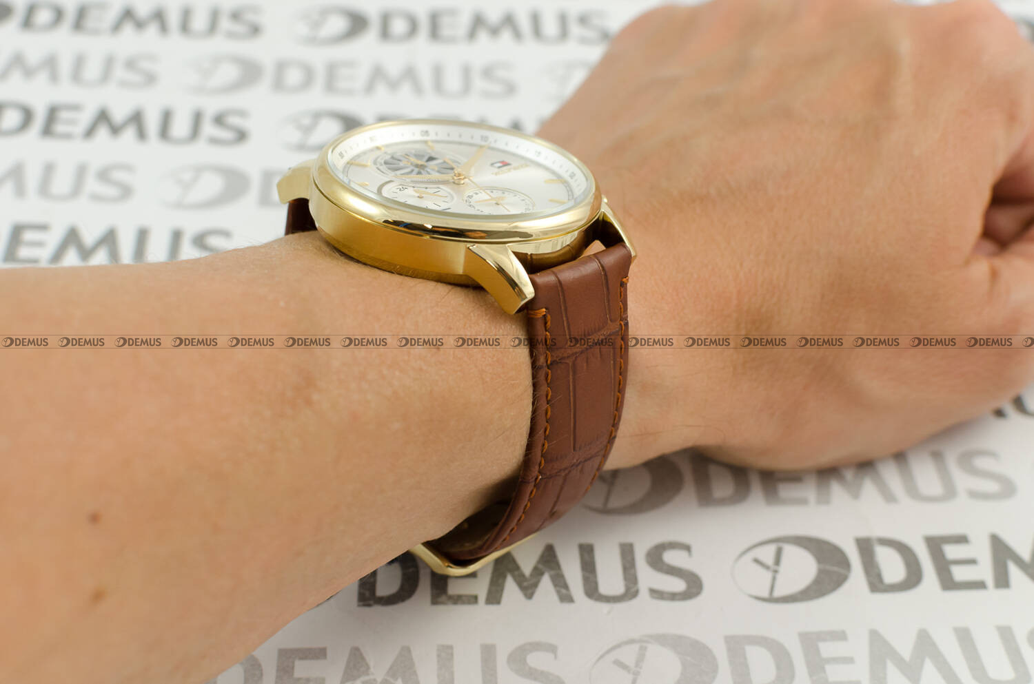 wykonana z wysokiej jakości stali szlachetnej. Stop ten charakteryzuje się najwyższym stopniem odporności na korozję. Koperta jest pozłacana