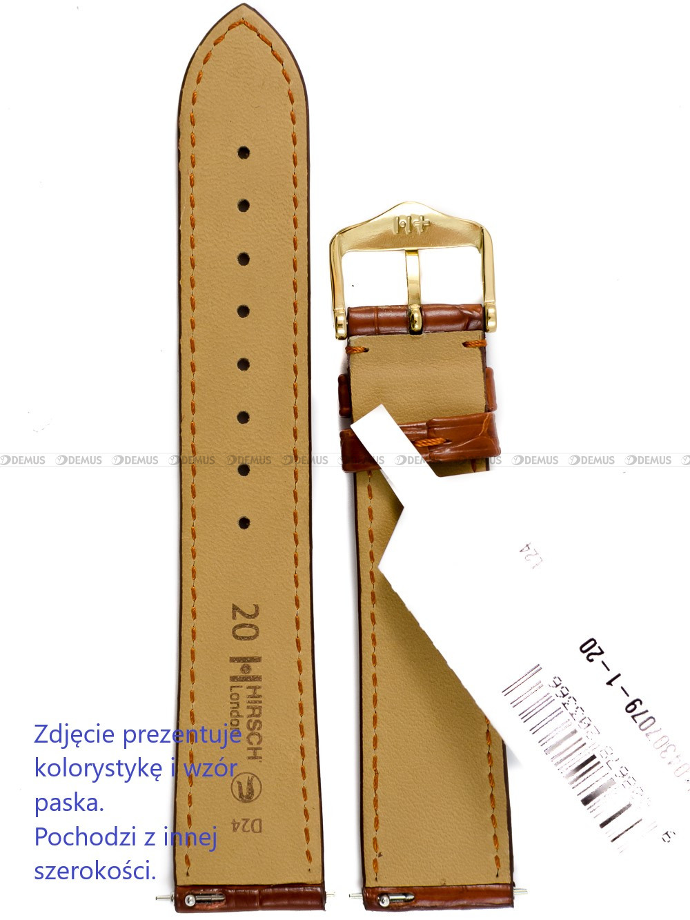 Pasek skórzany z aligatora do zegarka - Hirsch London 04307079-1-18 - 18 mm - Zwężany