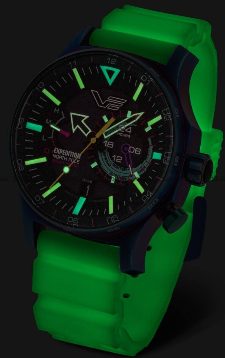 specjalne pokrycie wskazówek zegarka, delikatnie podświetlające w ciemnościach