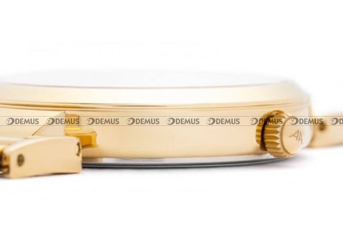 wykonana z wysokiej jakości stali szlachetnej. Stop ten charakteryzuje się najwyższym stopniem odporności na korozję. Koperta jest pozłacana