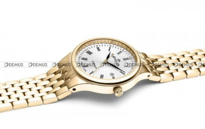 wykonana z wysokiej jakości stali szlachetnej. Stop ten charakteryzuje się najwyższym stopniem odporności na korozję. Koperta jest pozłacana