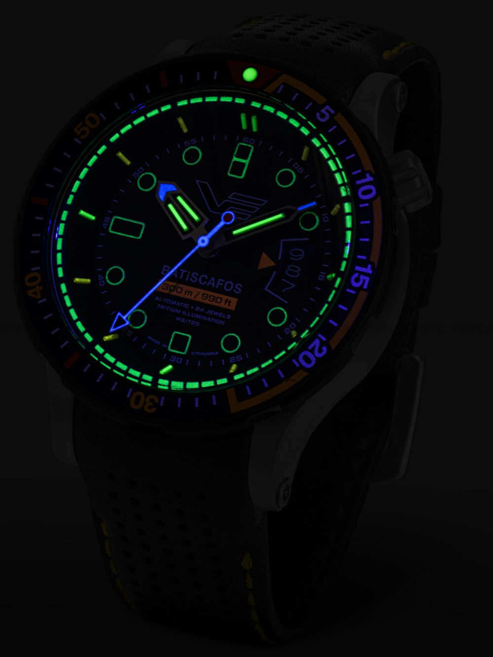 specjalne pokrycie wskazówek zegarka, delikatnie podświetlające w ciemnościach