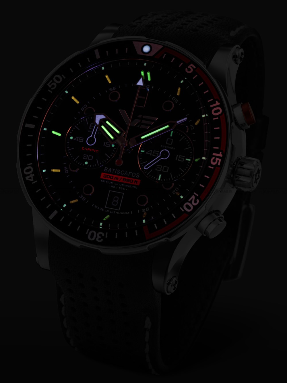 specjalne pokrycie wskazówek zegarka, delikatnie podświetlające w ciemnościach