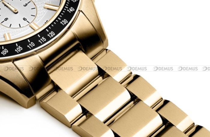 wykonana z wysokiej jakości stali szlachetnej. Stop ten charakteryzuje się najwyższym stopniem odporności na korozję. Koperta jest pozłacana