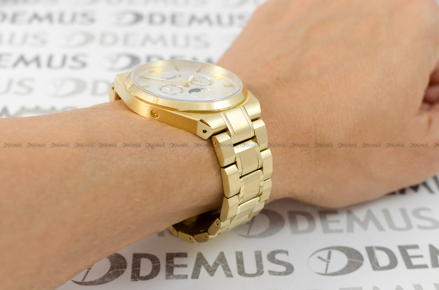 wykonana z wysokiej jakości stali szlachetnej. Stop ten charakteryzuje się najwyższym stopniem odporności na korozję. Koperta jest pozłacana
