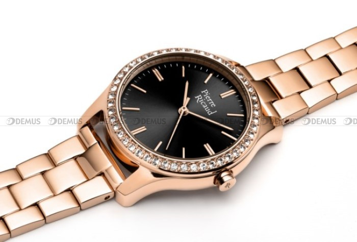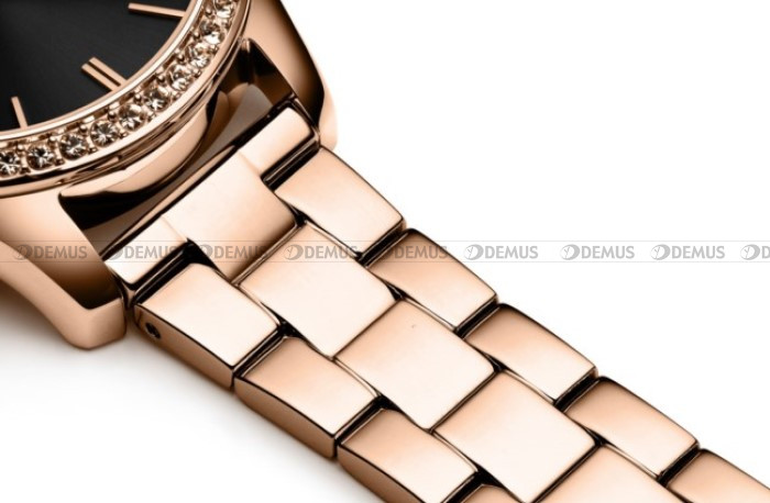 wykonana z wysokiej jakości stali szlachetnej. Stop ten charakteryzuje się najwyższym stopniem odporności na korozję. Koperta jest pozłacana i dodatkowo wysadzana kryształkami.