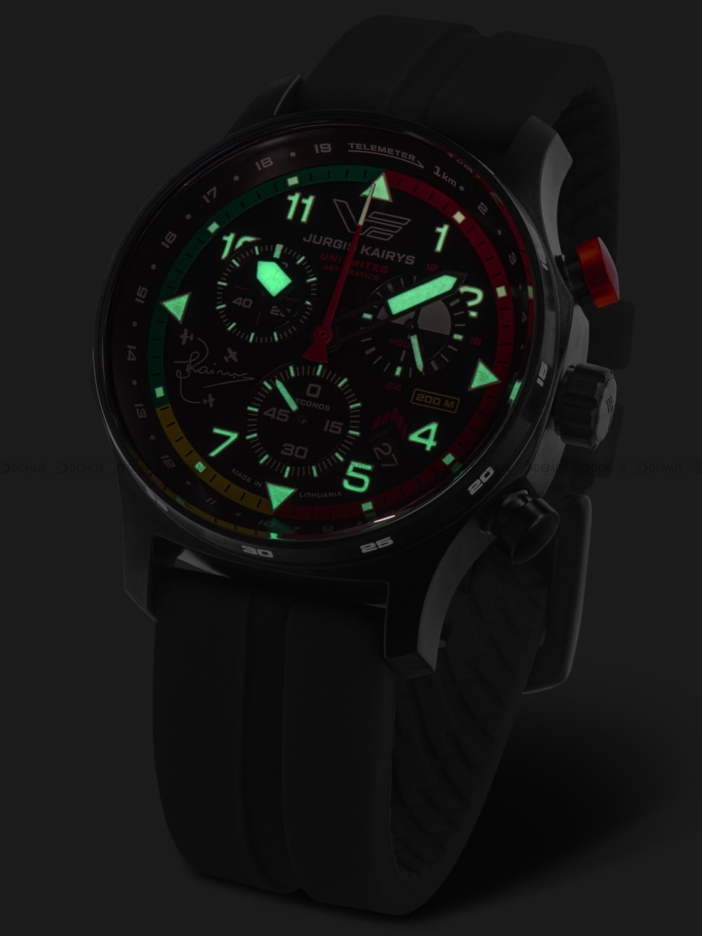 specjalne pokrycie wskazówek zegarka, delikatnie podświetlające w ciemnościach