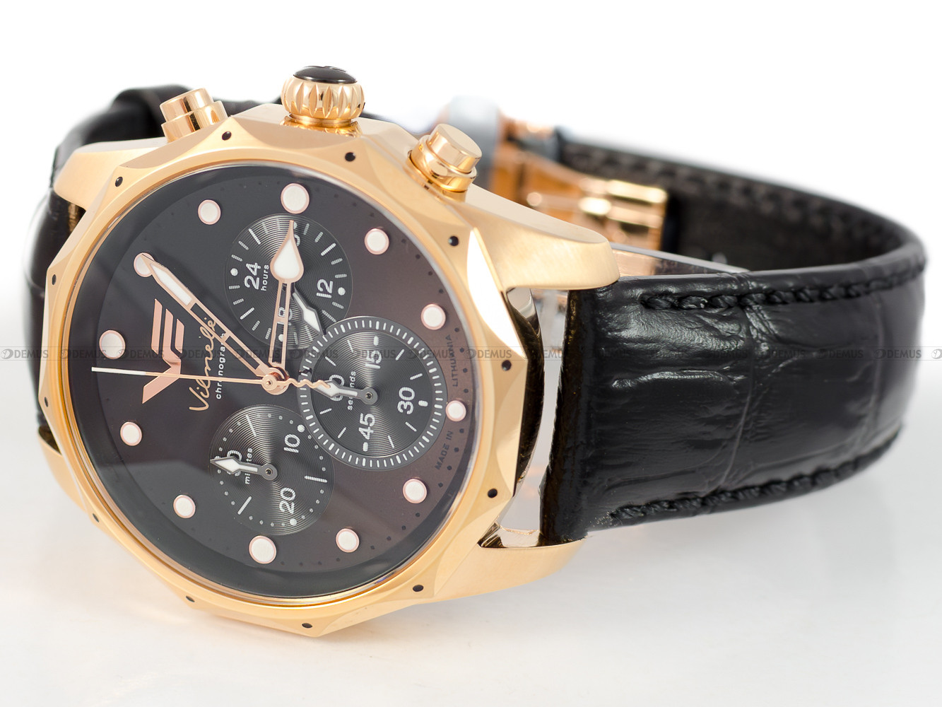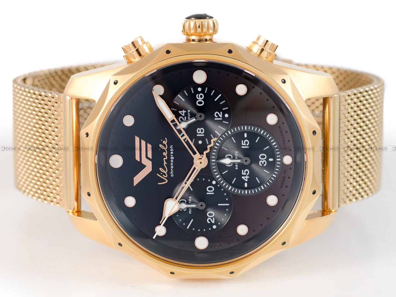 wykonana z wysokiej jakości stali szlachetnej. Stop ten charakteryzuje się najwyższym stopniem odporności na korozję. Koperta jest pozłacana