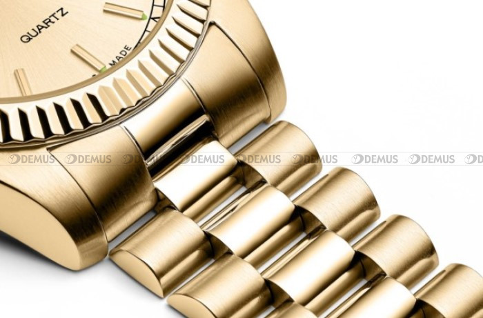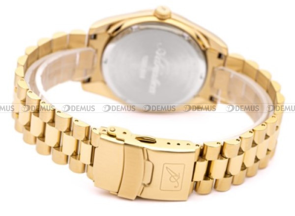wykonana z wysokiej jakości stali szlachetnej. Stop ten charakteryzuje się najwyższym stopniem odporności na korozję. Koperta jest pozłacana