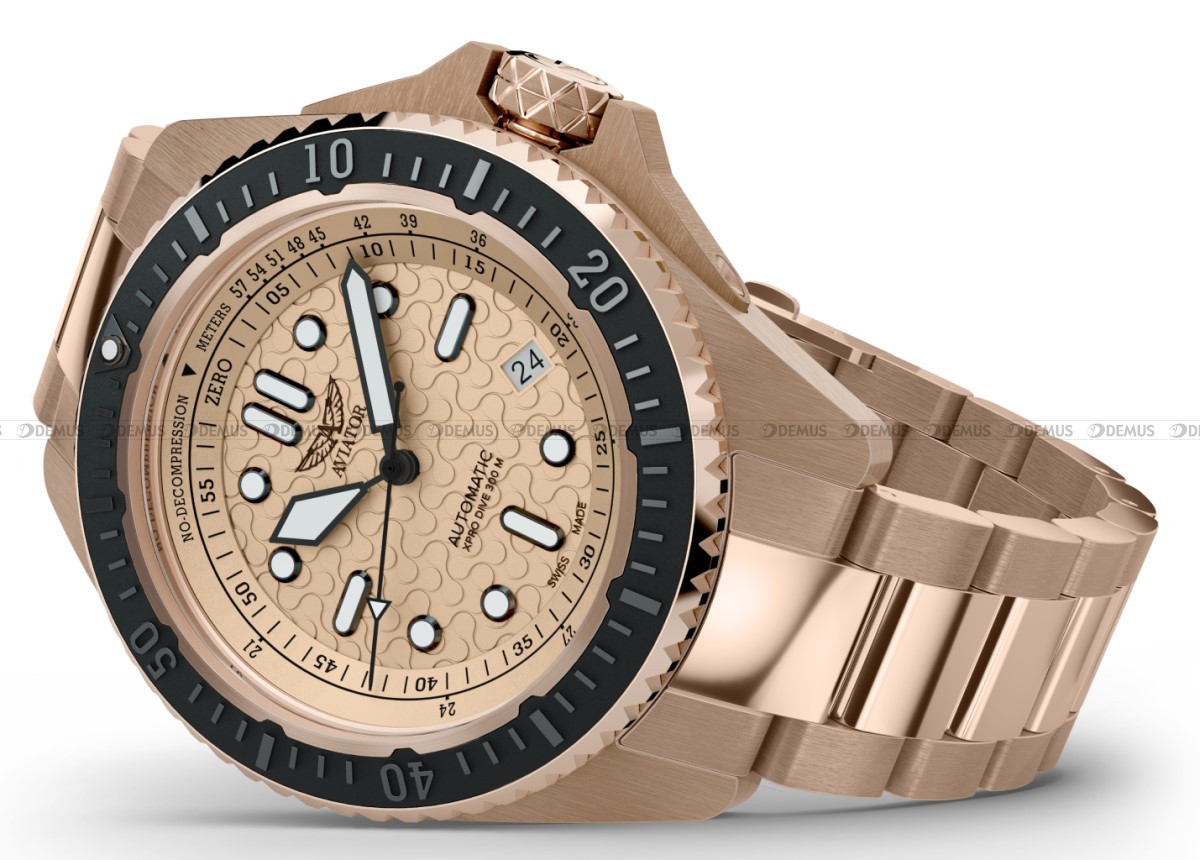 wykonana z wysokiej jakości stali szlachetnej. Stop ten charakteryzuje się najwyższym stopniem odporności na korozję. Koperta jest pozłacana