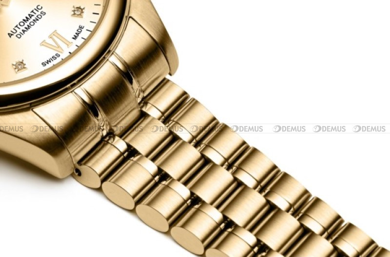 wykonana z wysokiej jakości stali szlachetnej. Stop ten charakteryzuje się najwyższym stopniem odporności na korozję. Koperta jest pozłacana