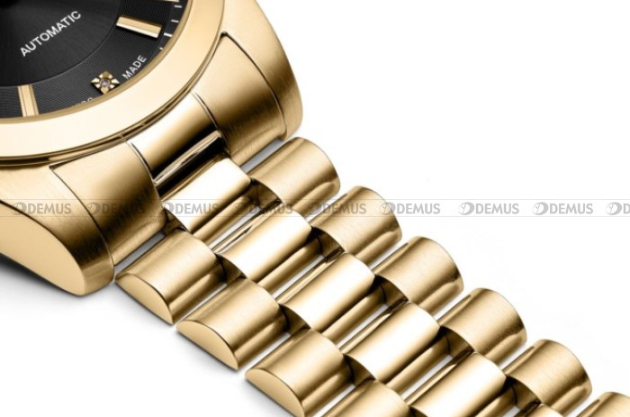 wykonana z wysokiej jakości stali szlachetnej. Stop ten charakteryzuje się najwyższym stopniem odporności na korozję. Koperta jest pozłacana